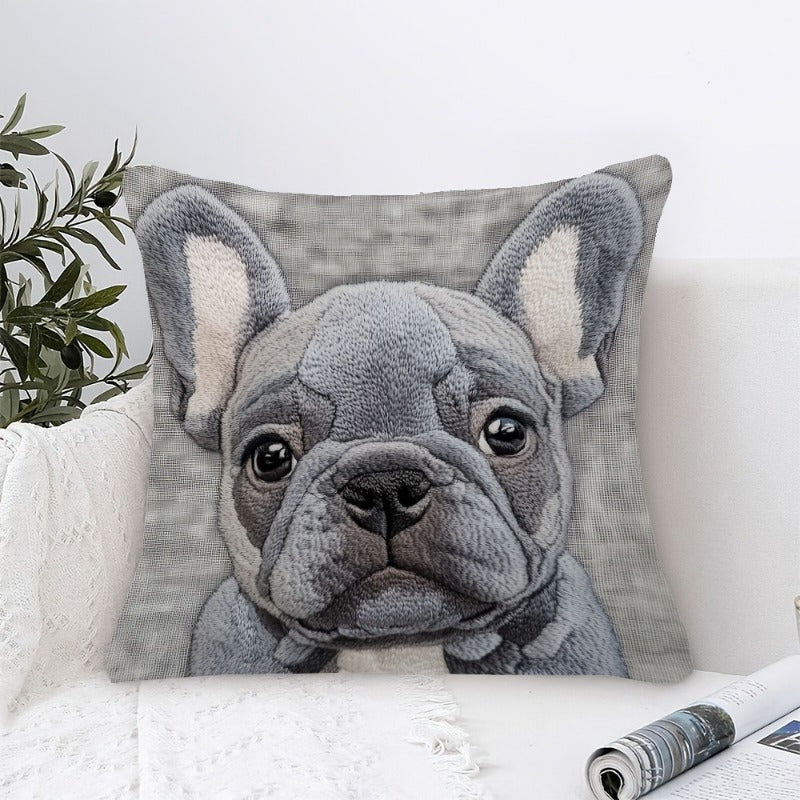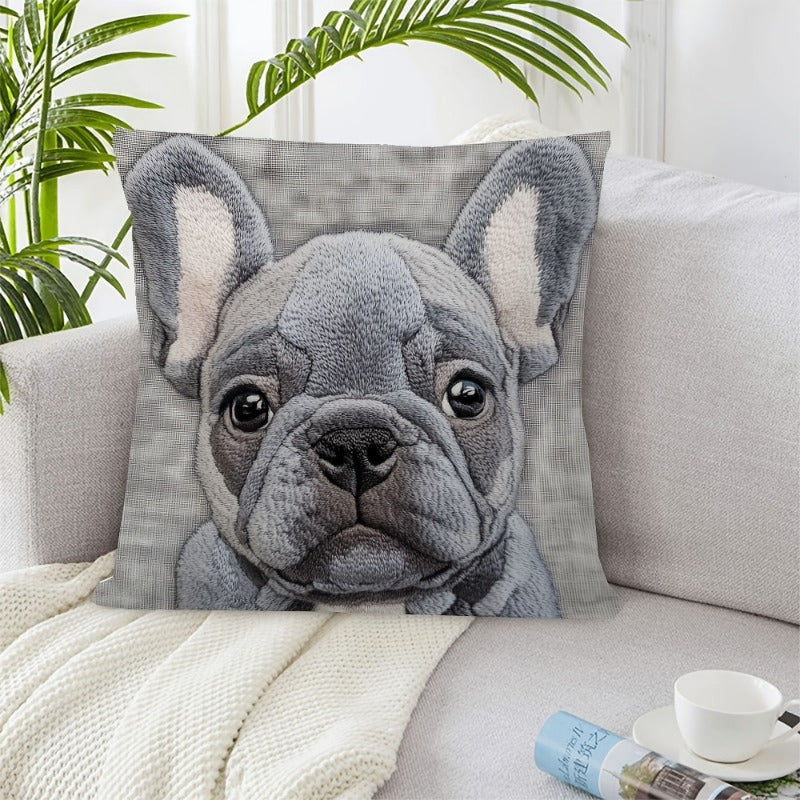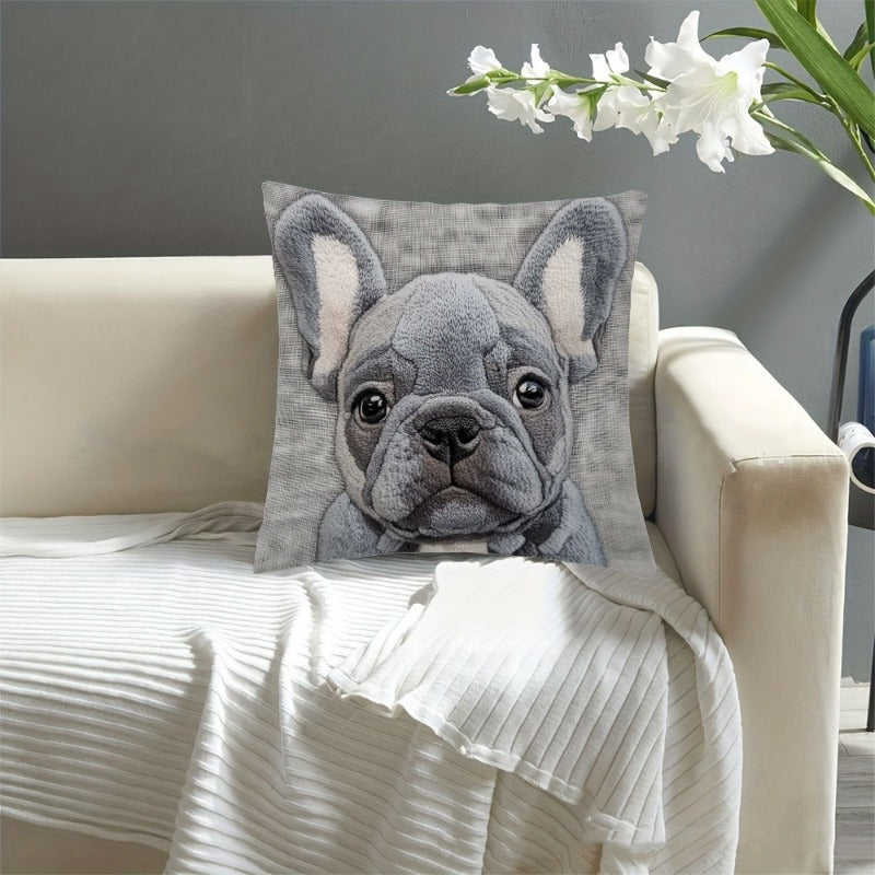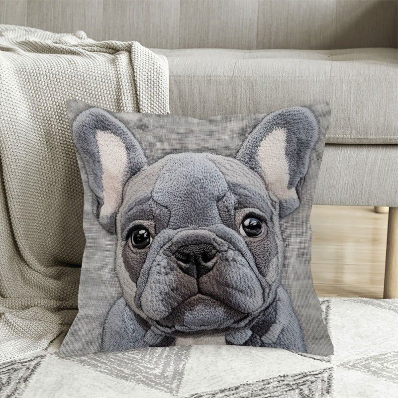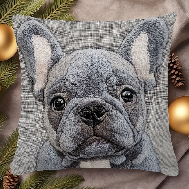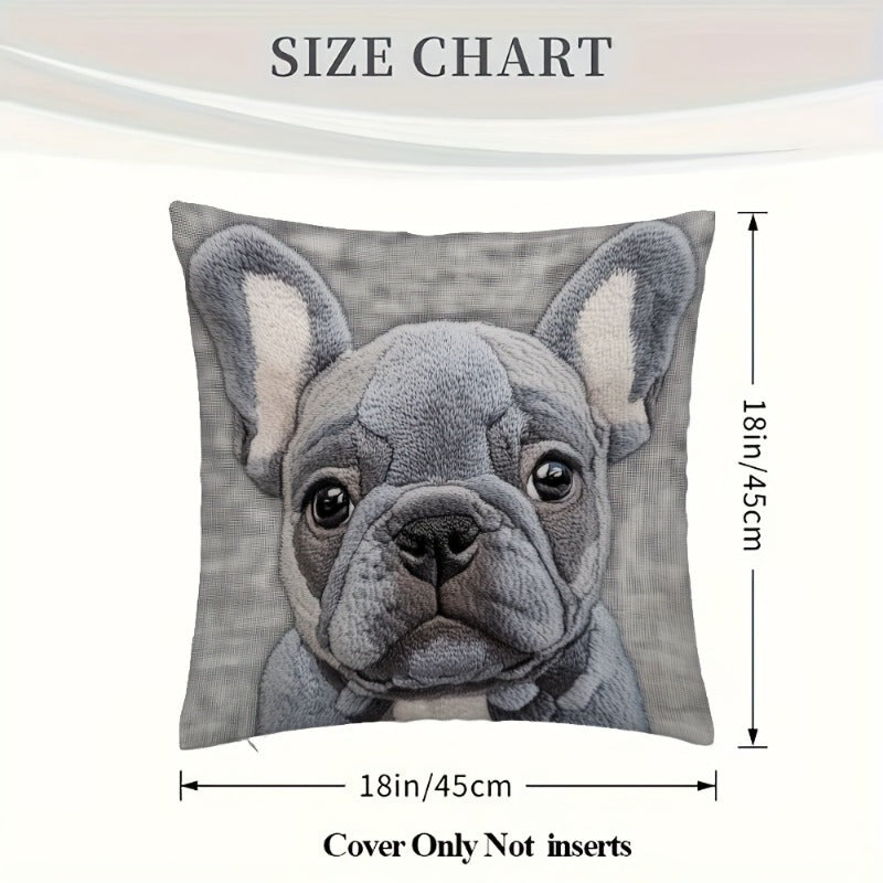 Декоративная наволочка с дизайном серого бульдога - 45,72x45,72 см, мягкий лен, машинная стирка с застежкой-молнией. Идеально подходит для домашнего, офисного или праздничного декора.