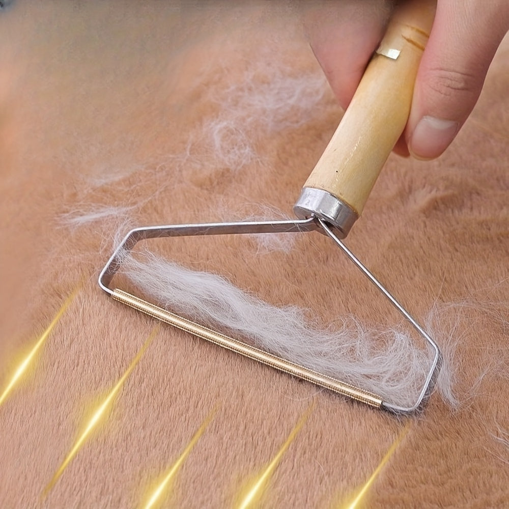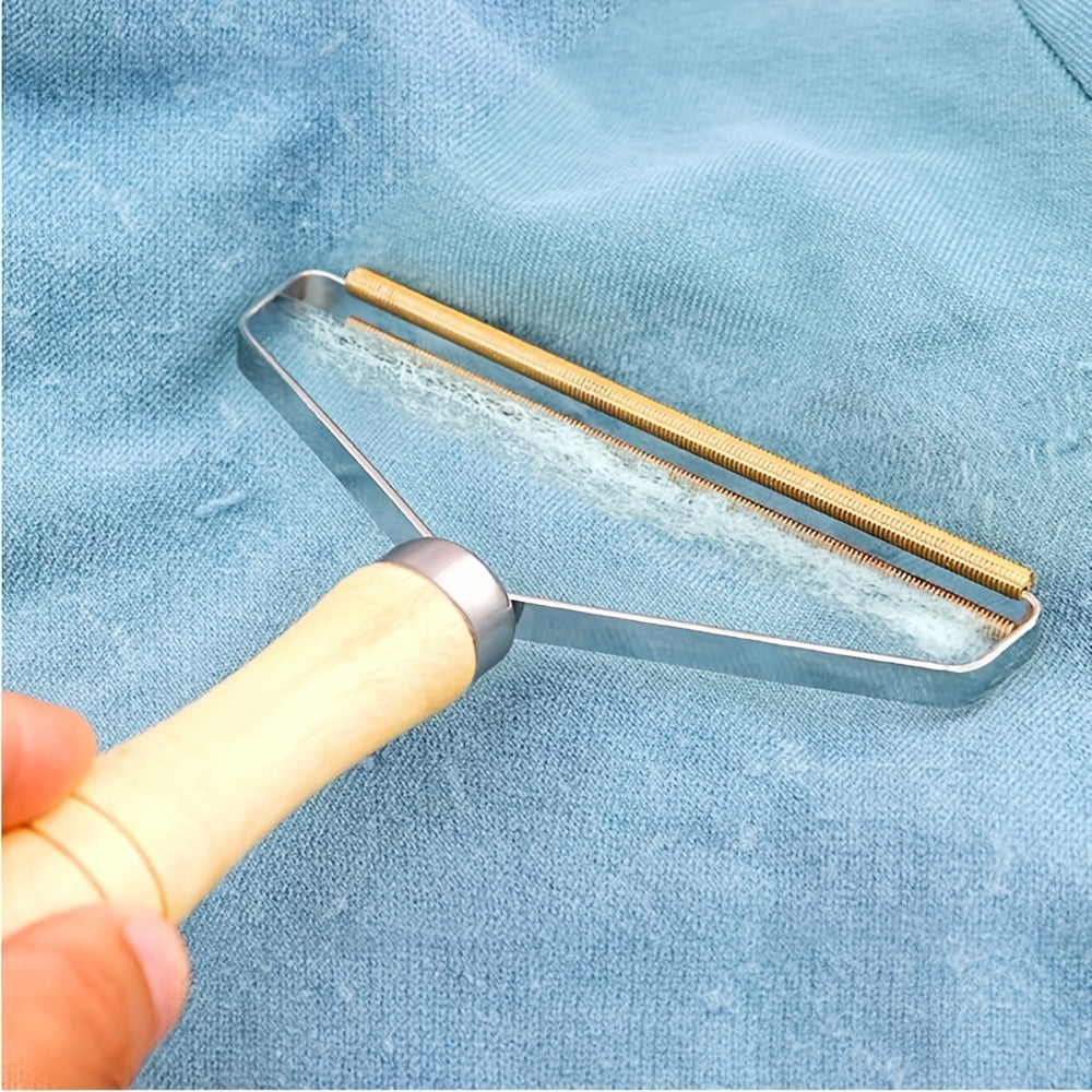 Удалитель ворса для волос и одежды с деревянной ручкой, двусторонний инструмент из нержавеющей стали