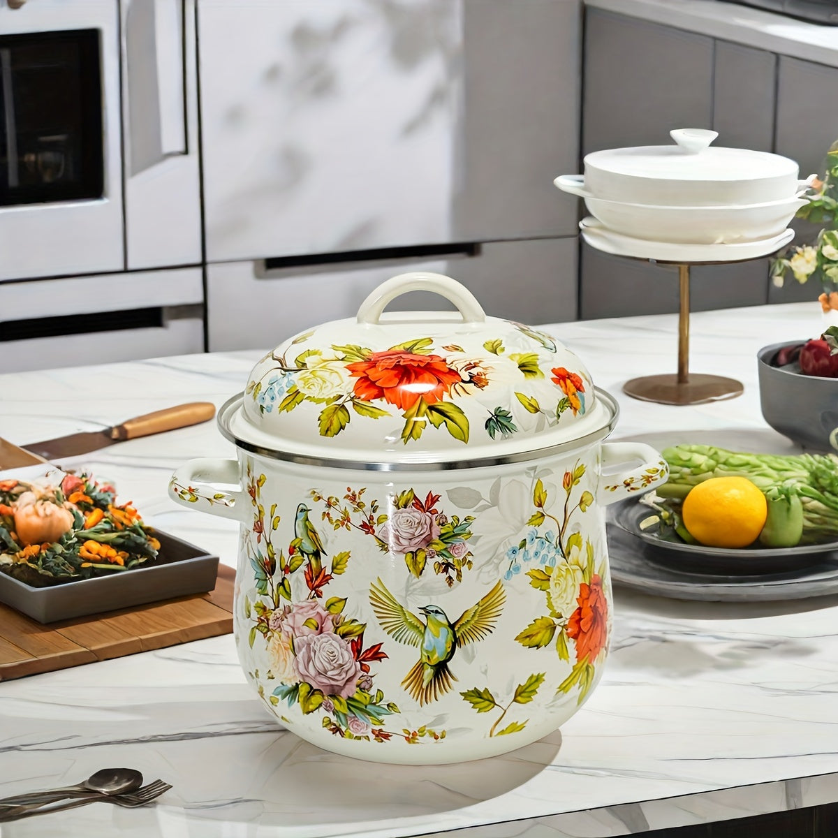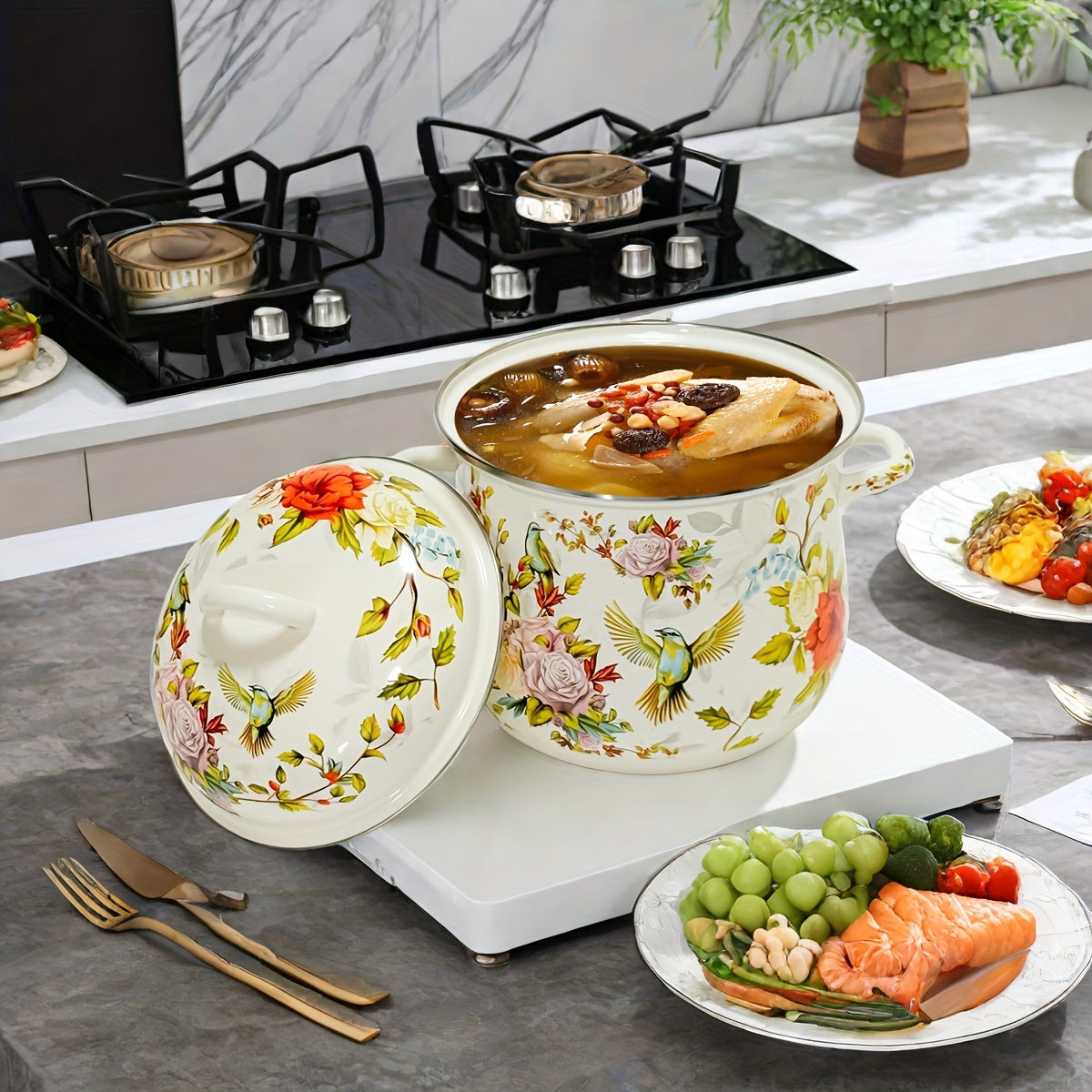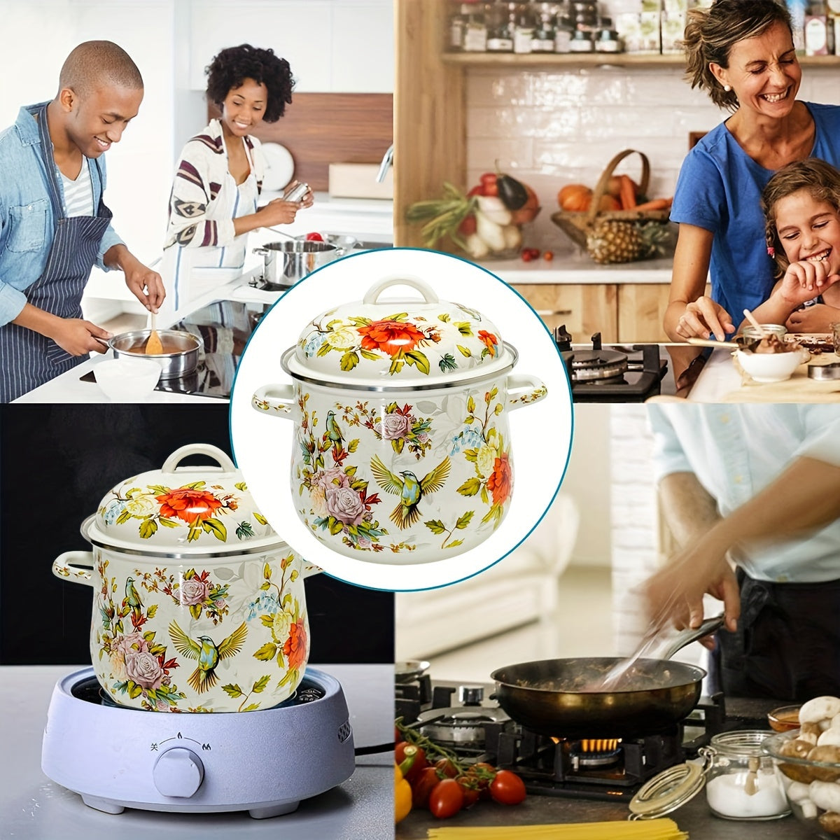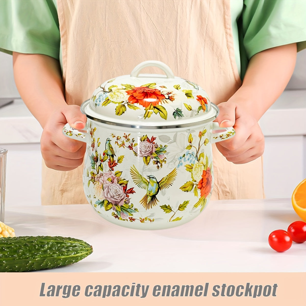 Ручная эмалированная кастрюля для супа с объемом 3,5 литра - универсальна для всех плит, отлично подходит для рагу и подачи, идеальный рождественский подарок для повара в вашей жизни.
