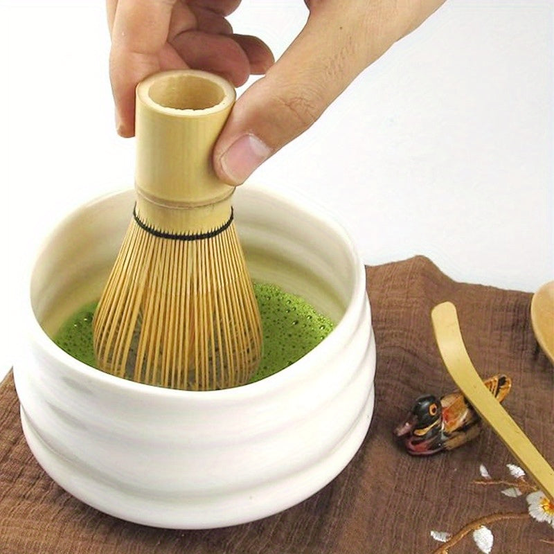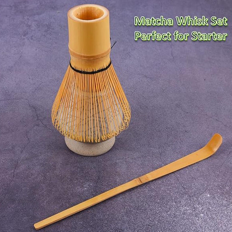 Изготовленный вручную набор для чая матча с венчиком, ложкой и держателем. Полный набор для традиционной японской чайной церемонии из 2 предметов.