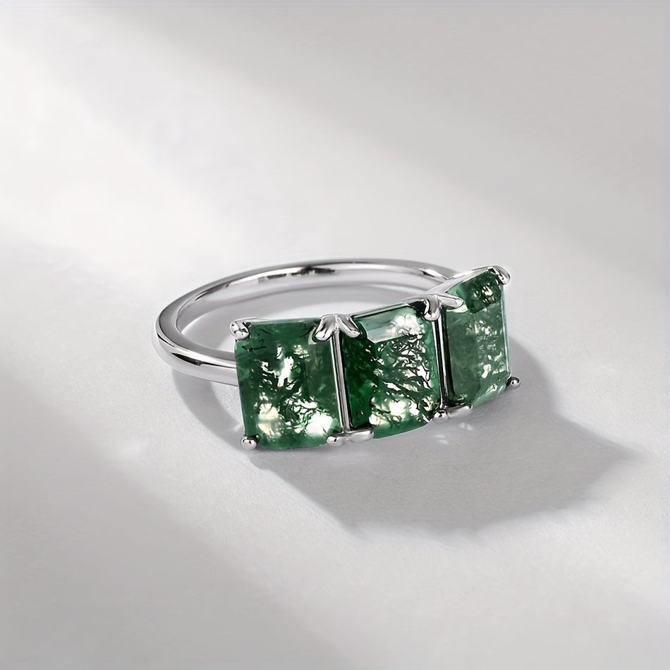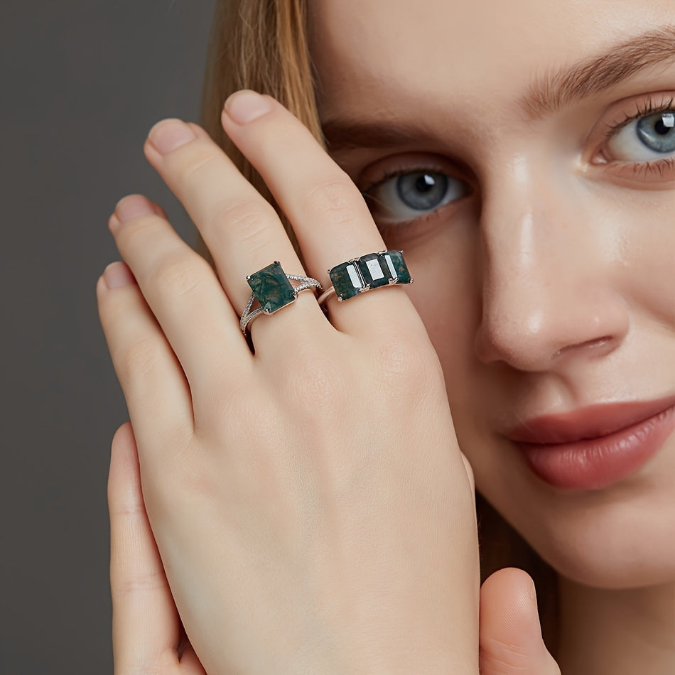 Кольцо из стерлингового серебра с квадратным моховым агатом 6x8 мм, украшение для женщин, камень рождения июня