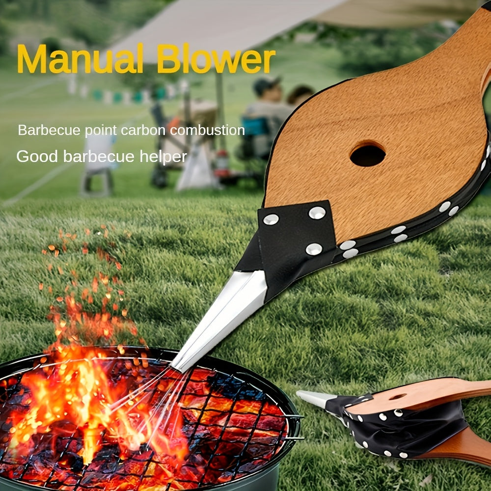 Ручной деревянный воздуходув с удлиненной ручкой и прочной металлической насадкой, каминный насос для гриля-барбекю, кемпинга, дровяной печи и предметов первой необходимости для приготовления пищи на открытом воздухе.