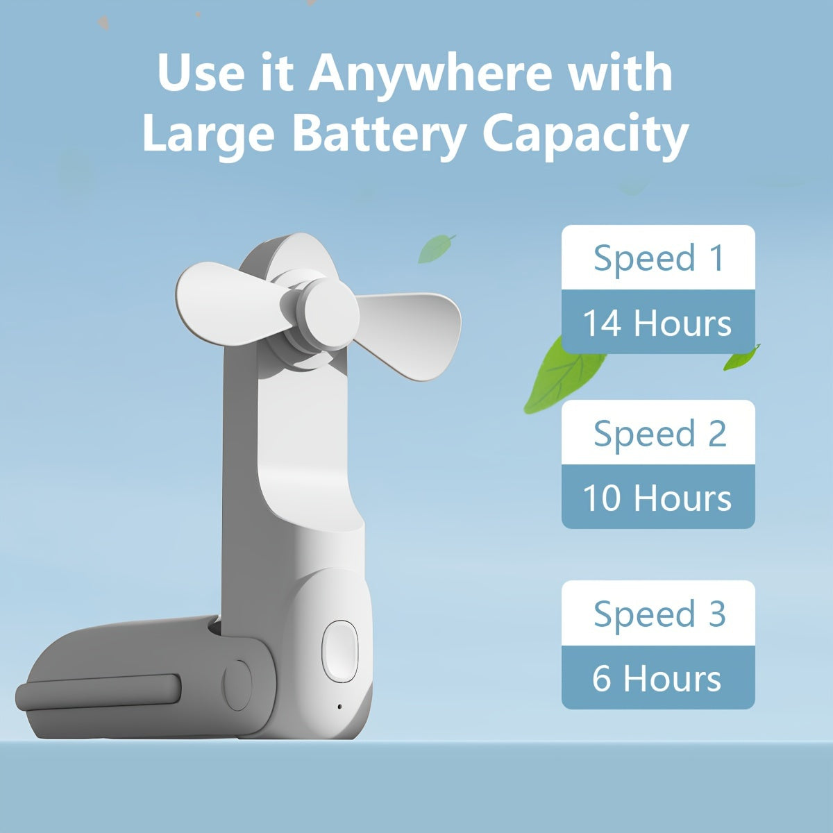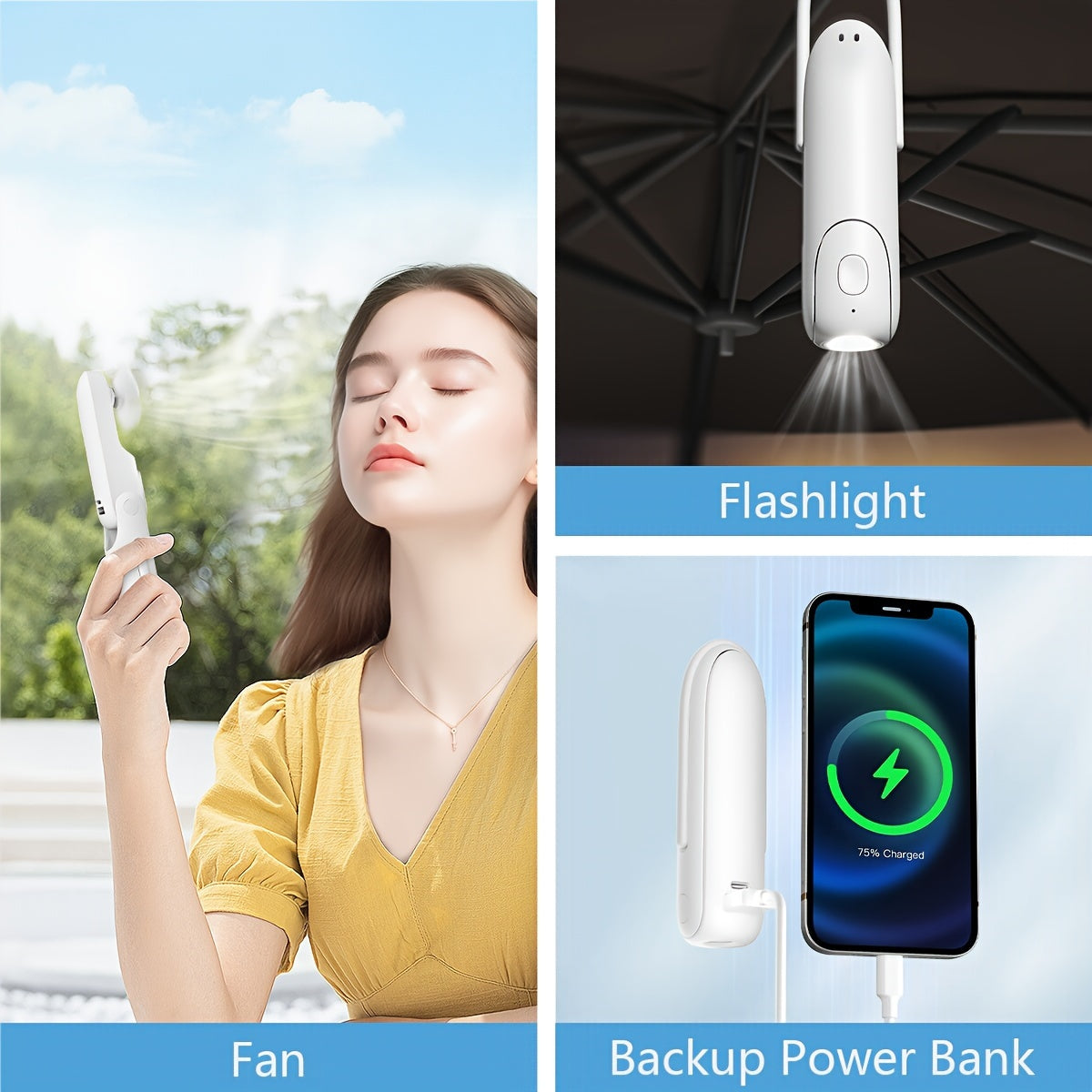 Ручной USB-вентилятор с регулируемой конструкцией, материал ABS, кнопочное управление, носимый, для использования в помещении/на улице, встроенный литиевый аккумулятор. Может использоваться как очиститель воздуха с функцией нагрева/охлаждения.
