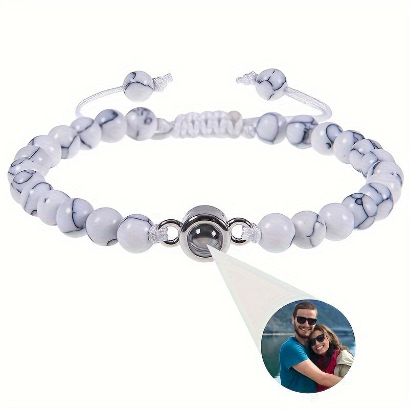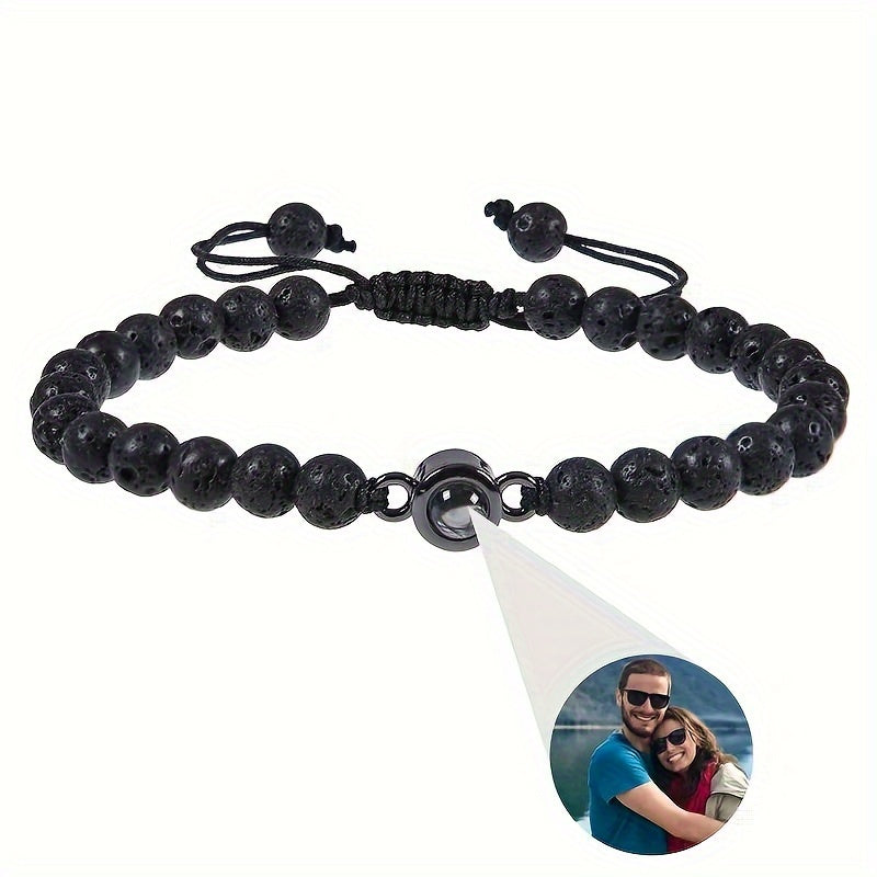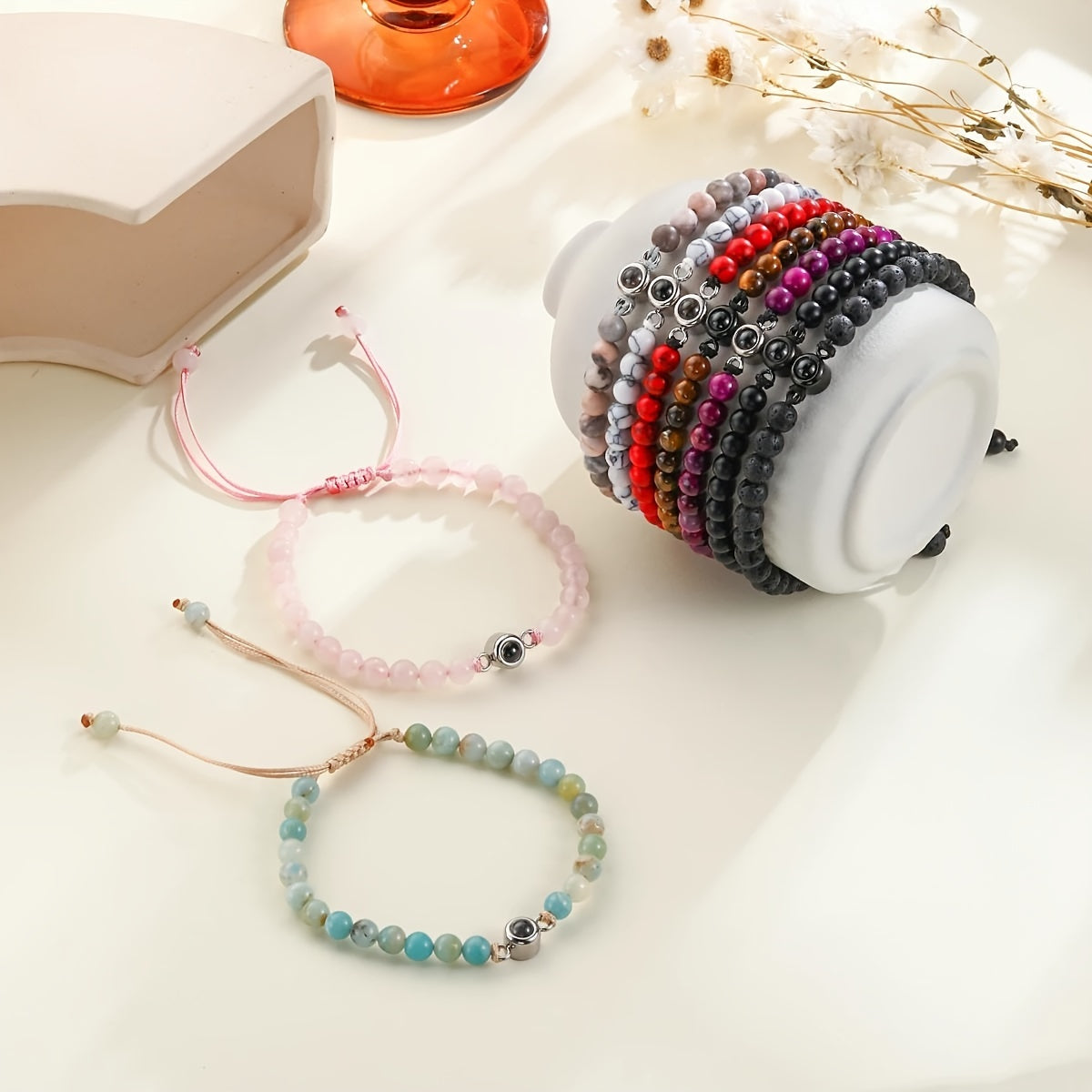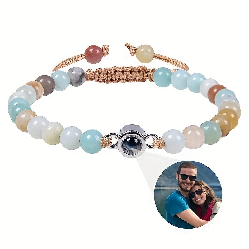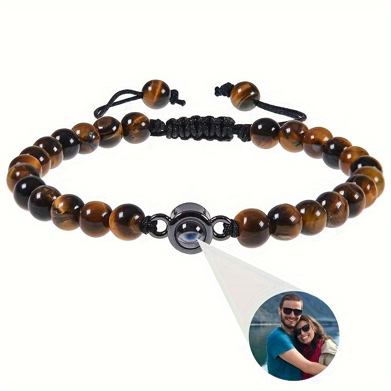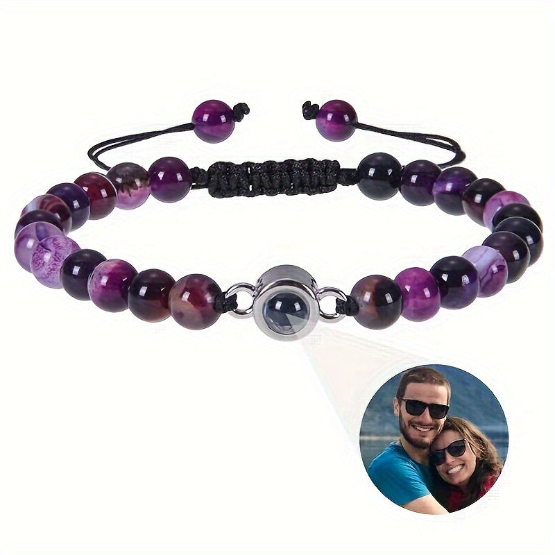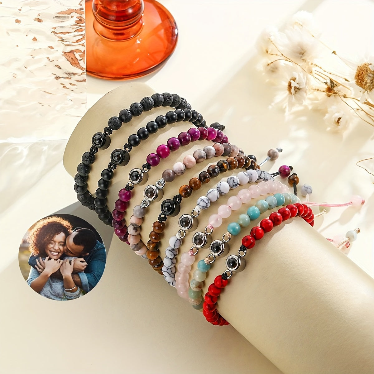Ручная работа: регулируемый браслет из натуральных камней с проекцией настраиваемого фото - доступен в золотом, серебряном, розовом золотом или черном исполнении - идеальный подарок для пар на годовщины и особые случаи.