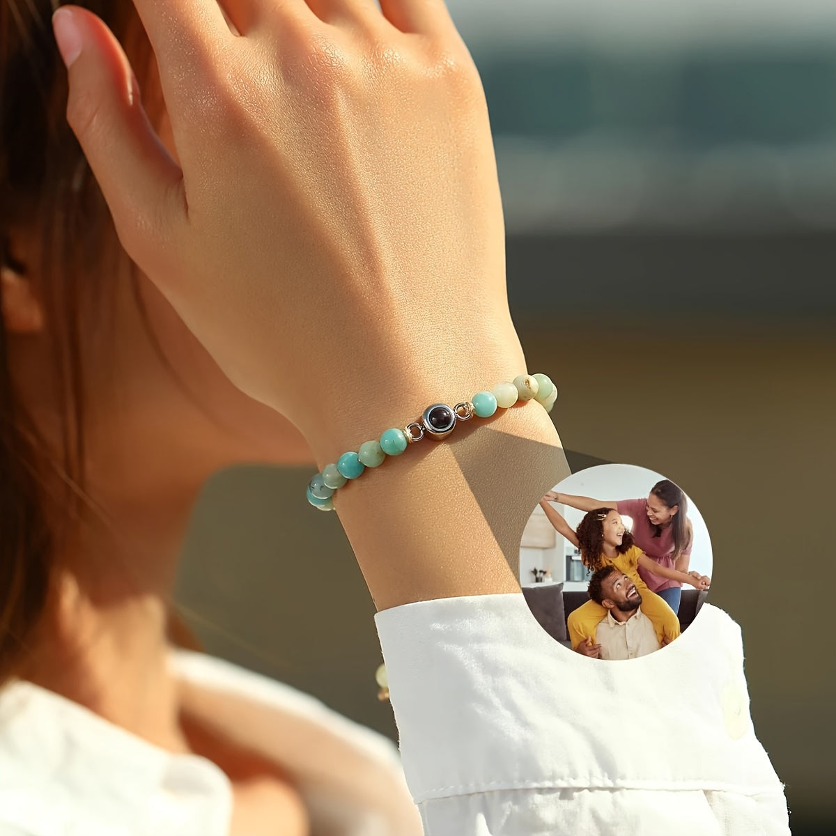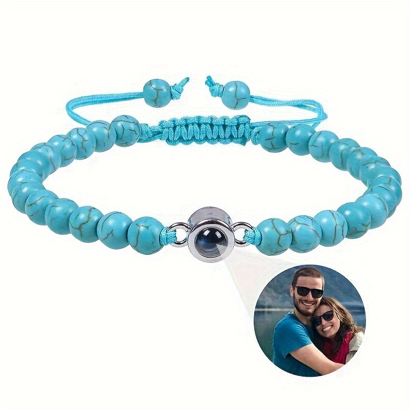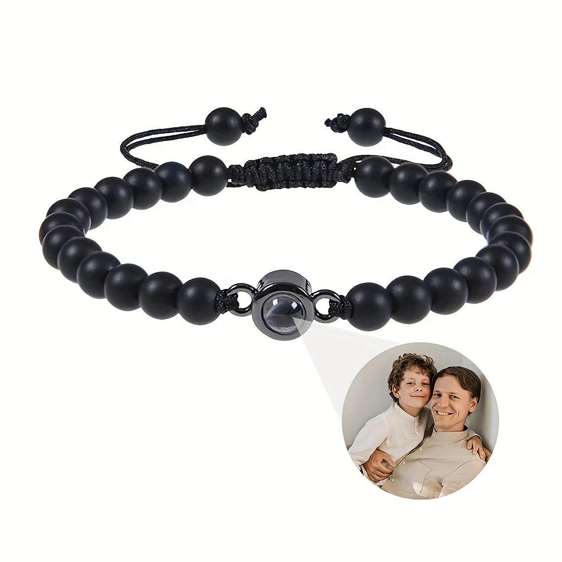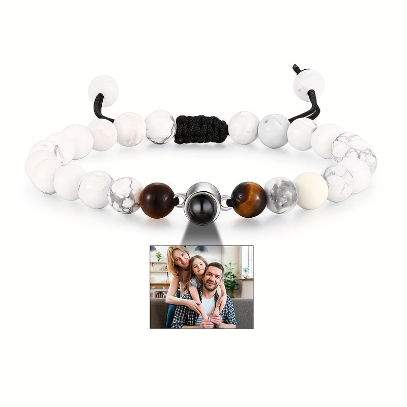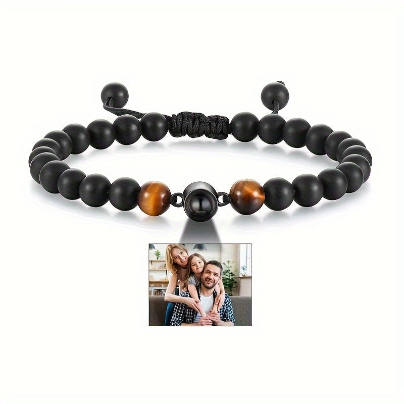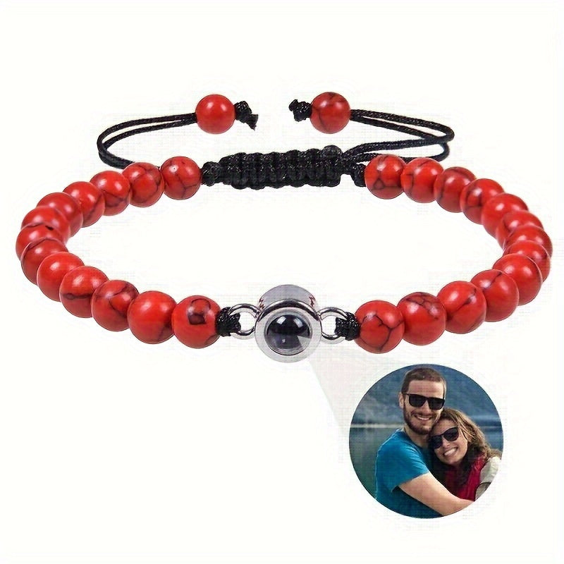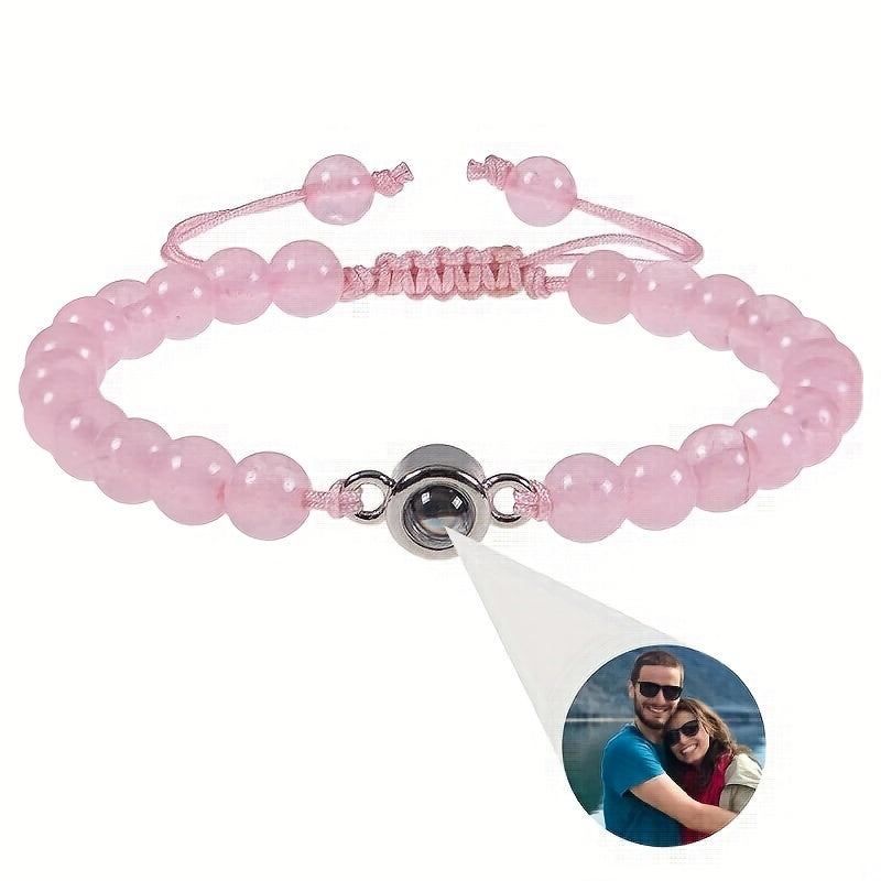 Ручная работа: регулируемый браслет из натуральных камней с проекцией настраиваемого фото - доступен в золотом, серебряном, розовом золотом или черном исполнении - идеальный подарок для пар на годовщины и особые случаи.