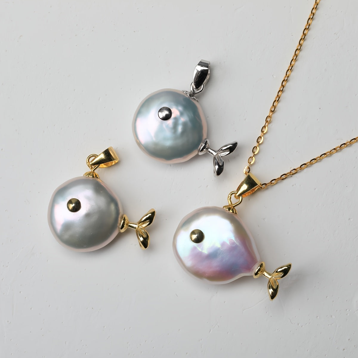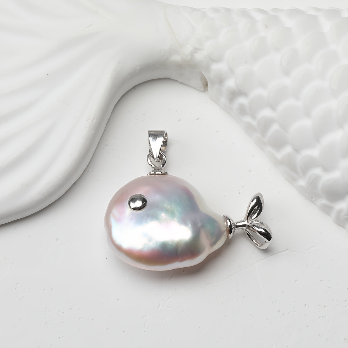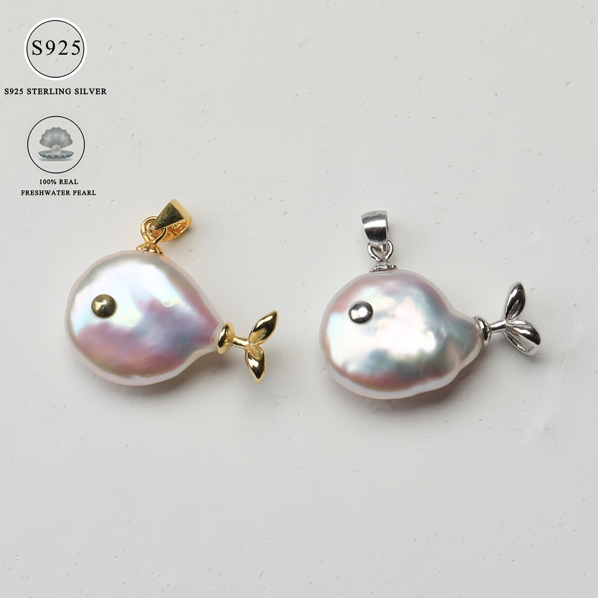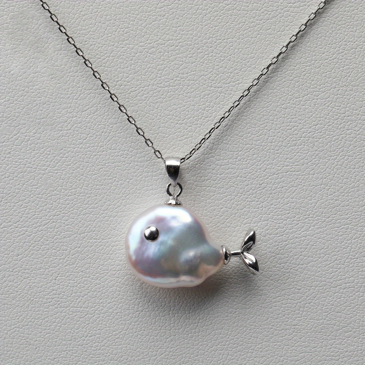 Ручной работы барочный кулон из пресноводных жемчужин в виде рыбы - S925 стерлинговое серебро, очаровательная морская тема, идеально подходит для повседневной носки и подарков, батареи не требуются
