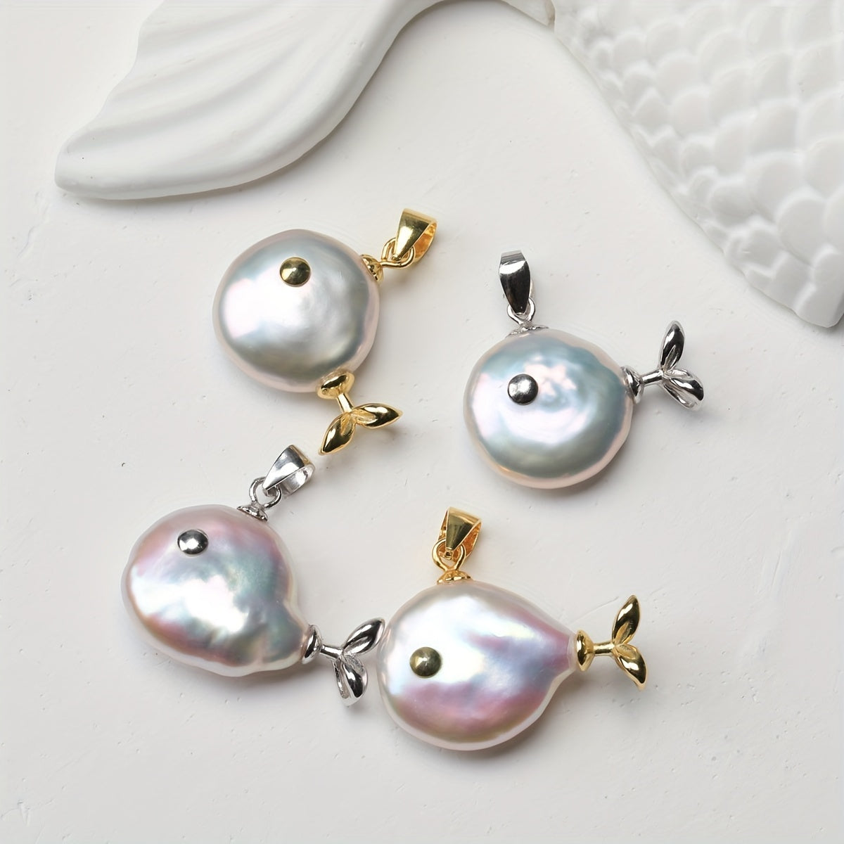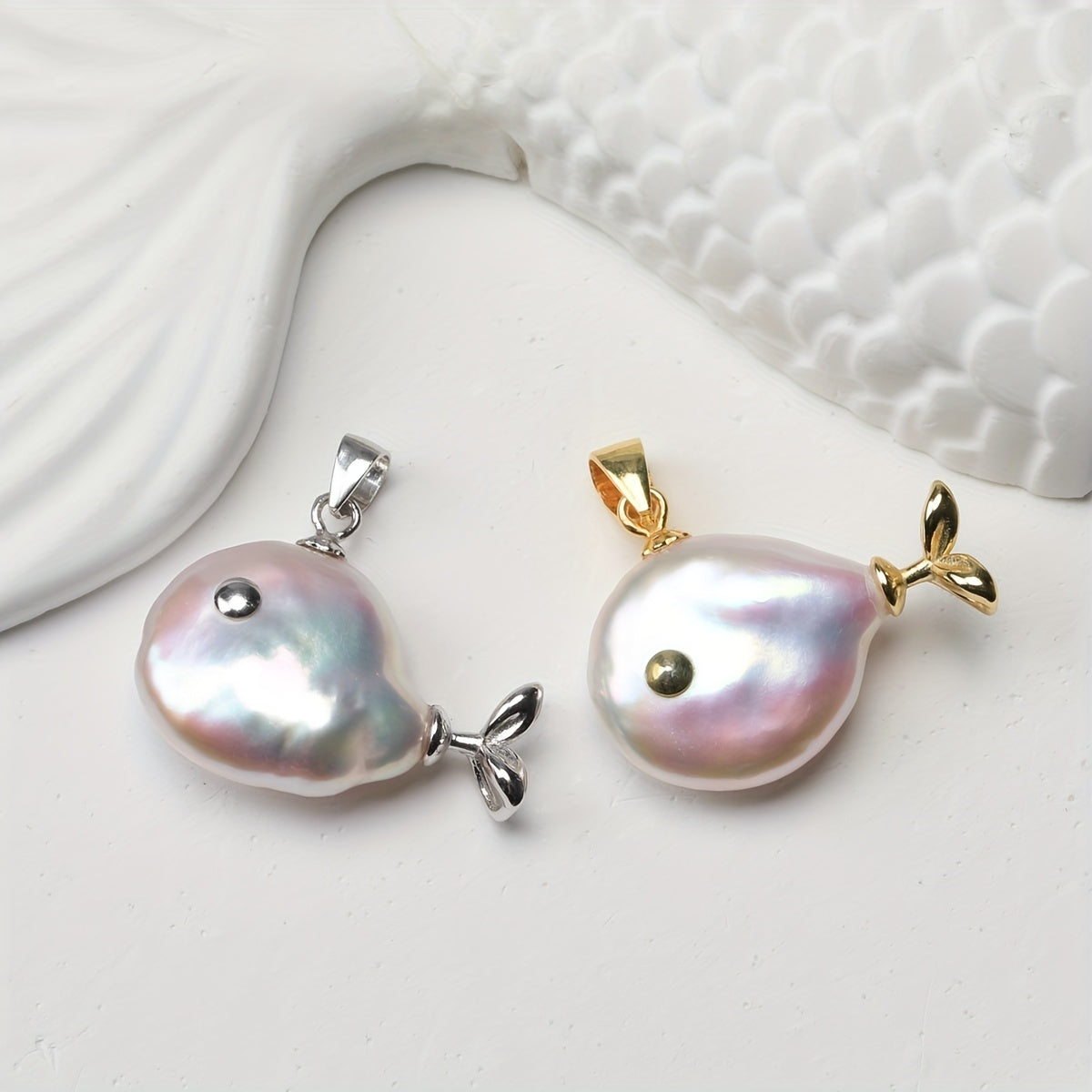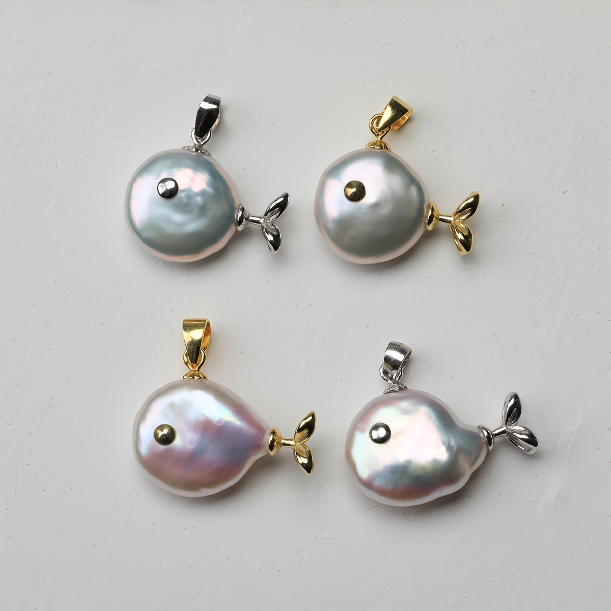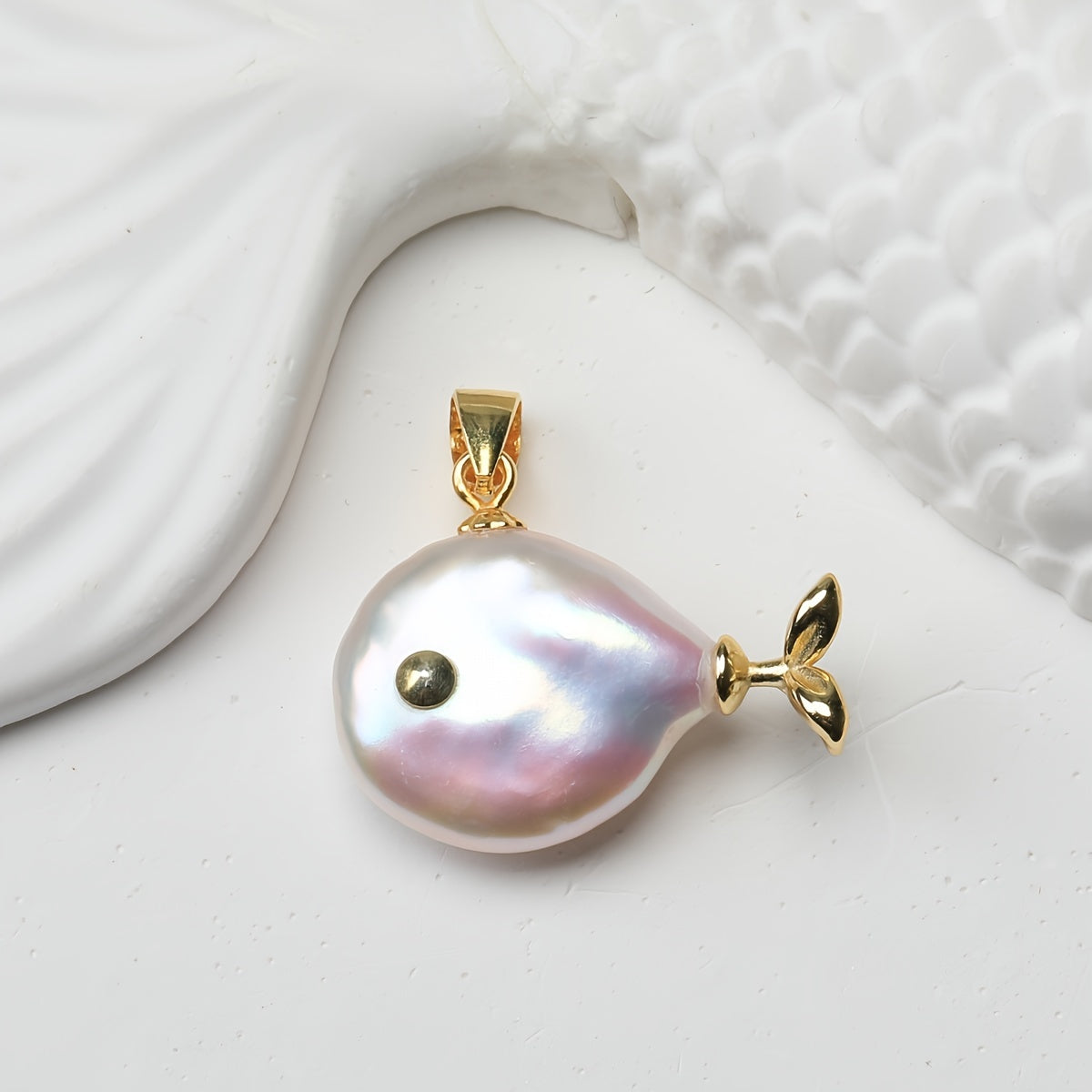 Ручной работы барочный кулон из пресноводных жемчужин в виде рыбы - S925 стерлинговое серебро, очаровательная морская тема, идеально подходит для повседневной носки и подарков, батареи не требуются