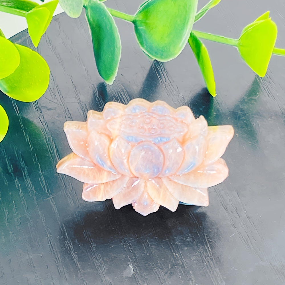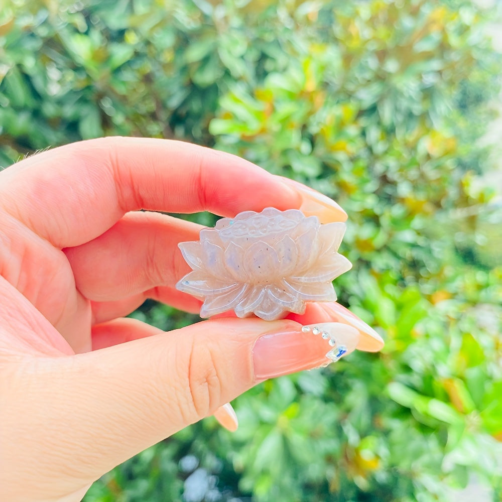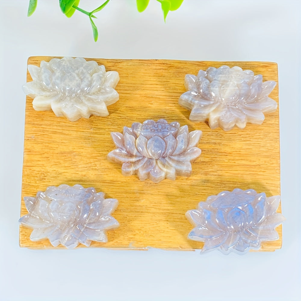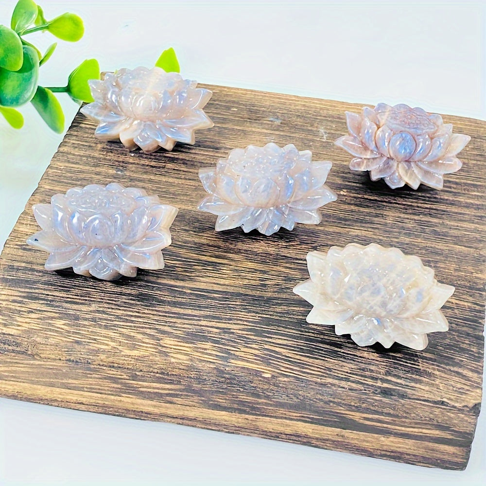 Ручная работа Лунный камень Лотос Цветок Скульптура Кристалл-камень Искусственный драгоценный камень Домашний декор
