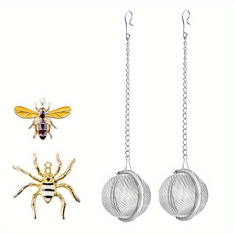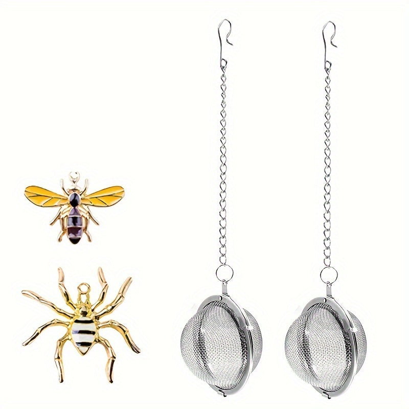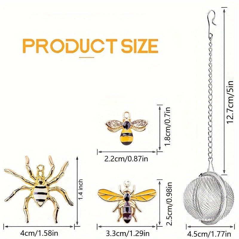 Набор для заваривания чая ручной работы с дизайном в виде пчелы и паука. Включает 2 ситечка и подвеску в виде пчелы. Идеально подходит для заваривания листового чая.