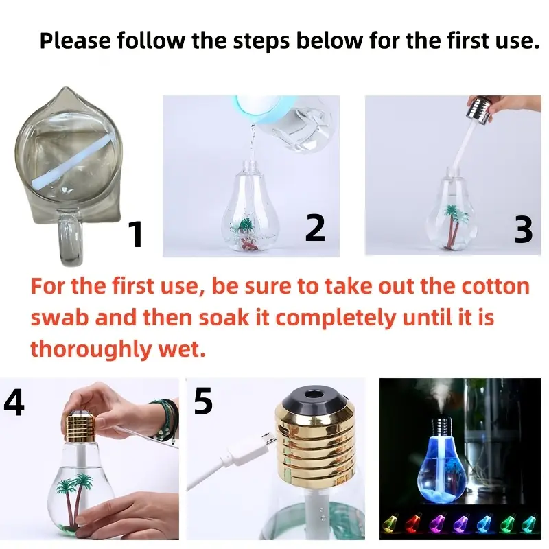 Подвесной увлажнитель с лампочкой, яркие огни, питание от USB, атомизация, 1 л, ночник