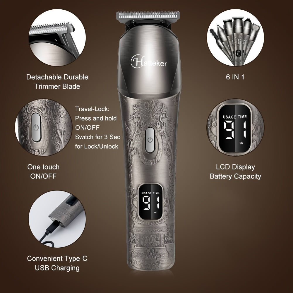 Мужской набор для ухода за собой 6-в-1, беспроводной, перезаряжаемый через USB, для всех потребностей в уходе