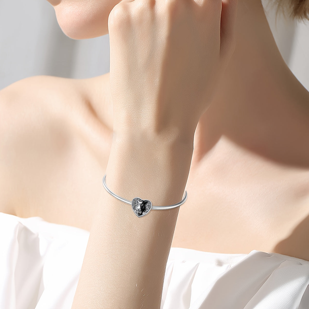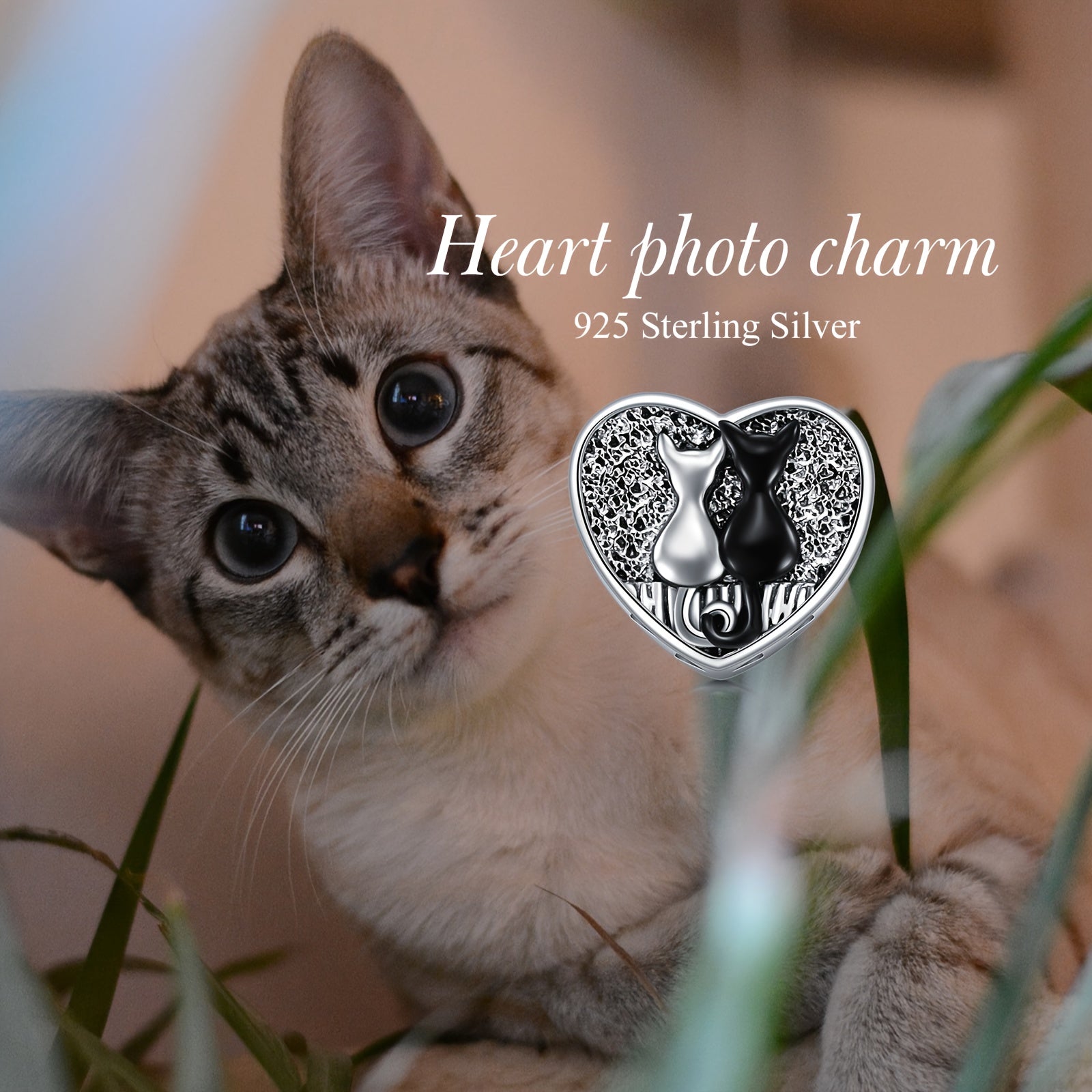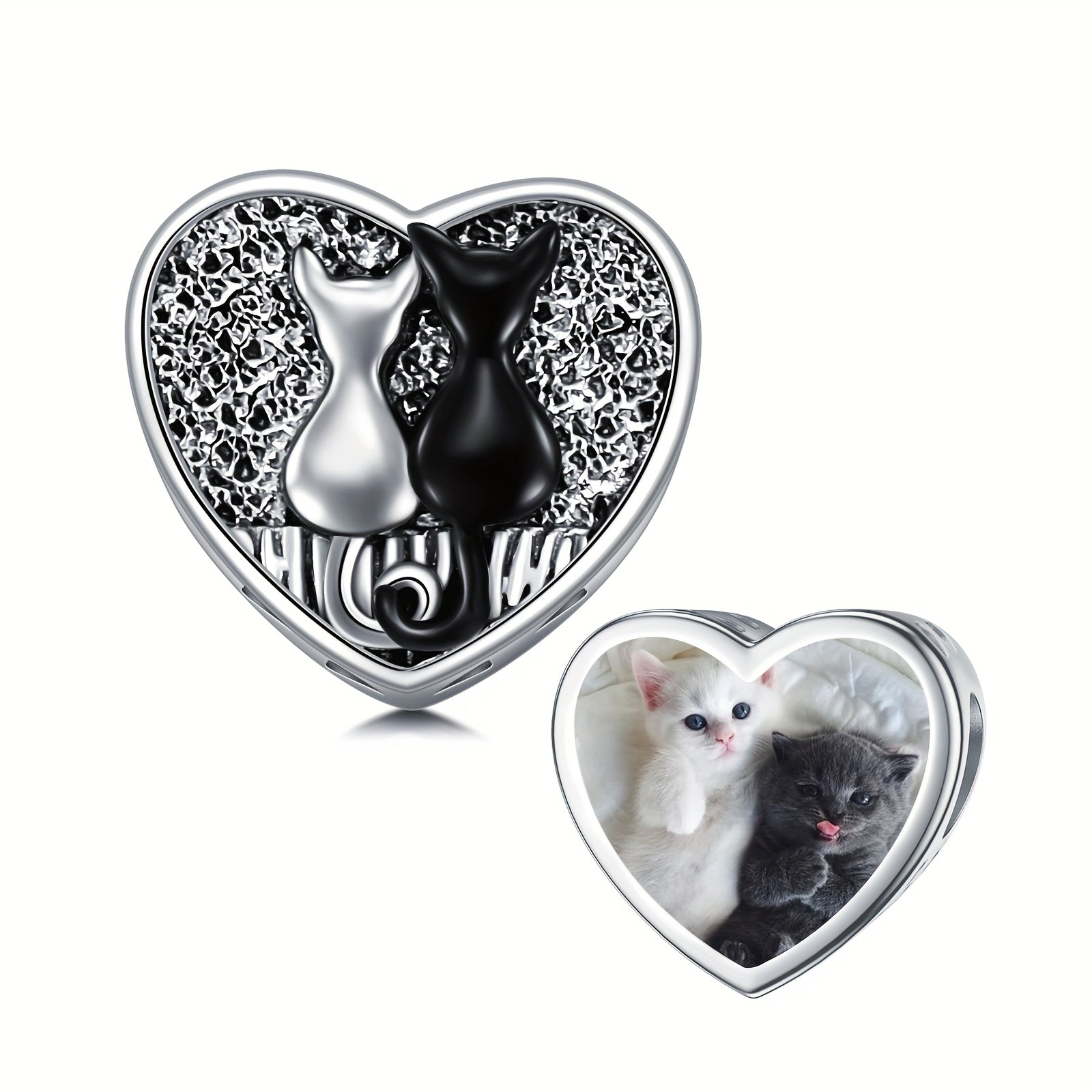 Серебряный шарм в виде сердца с изображением кота и фотобусиной, позолоченные украшения