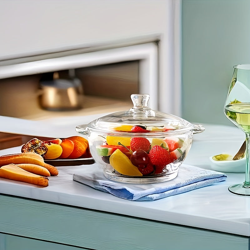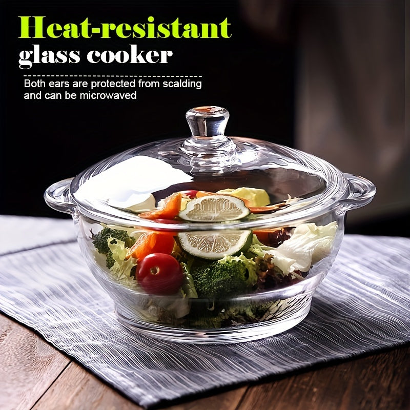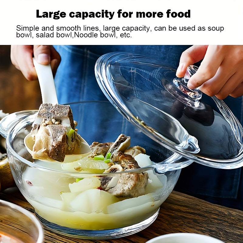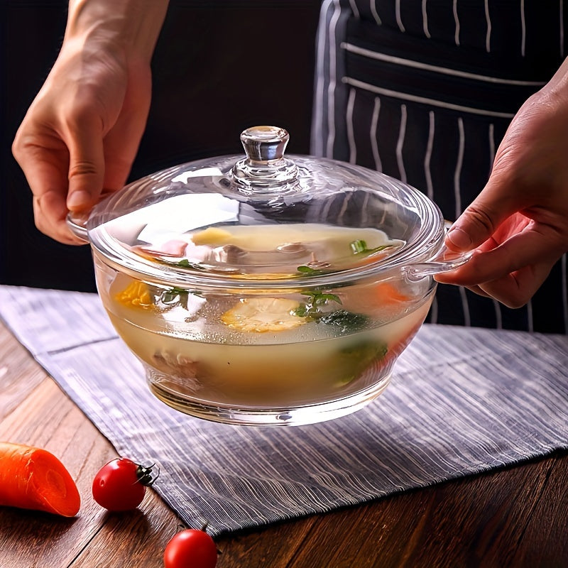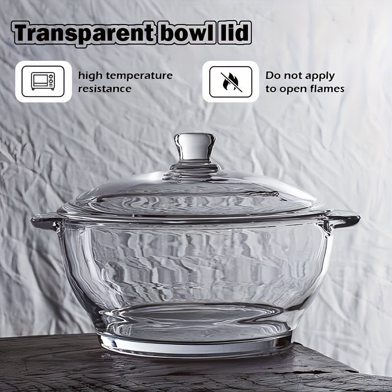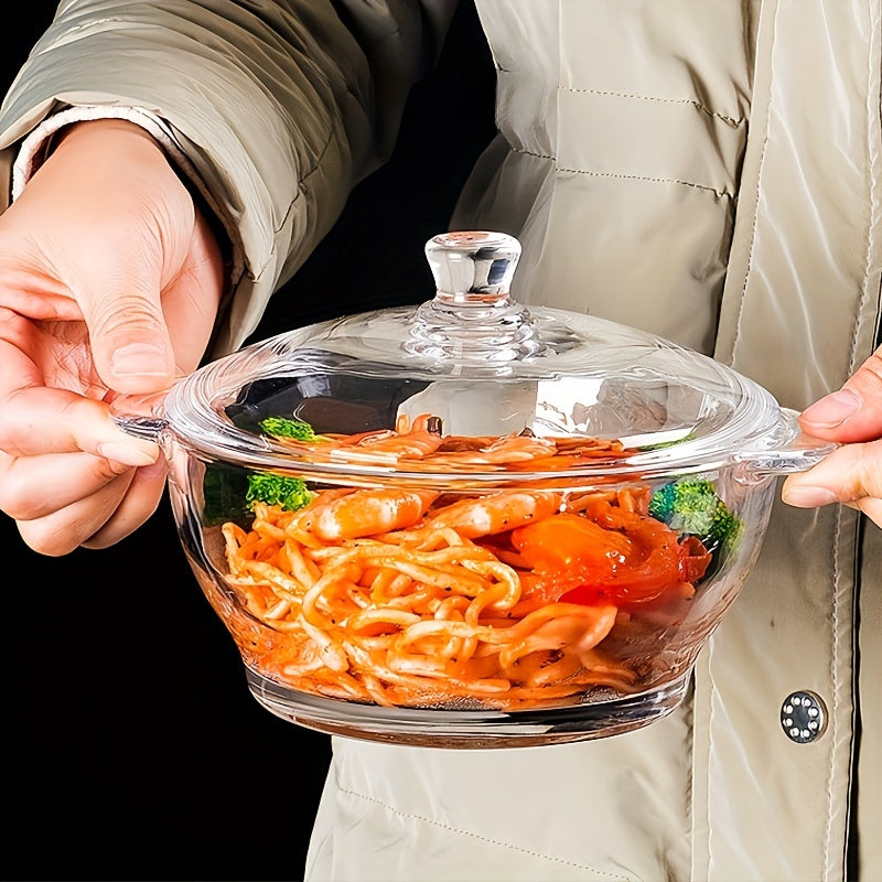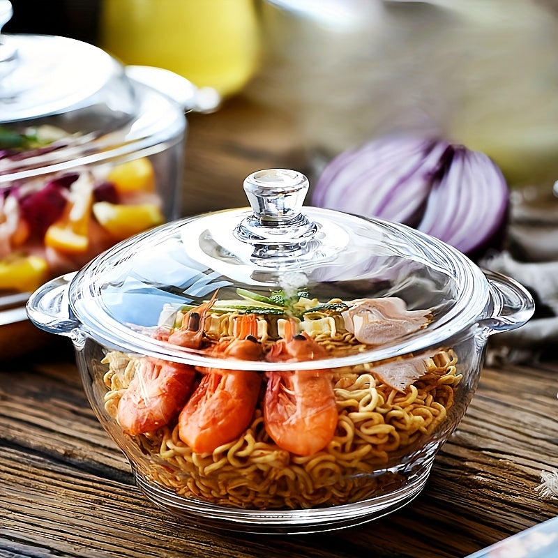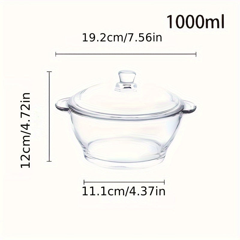 Термостойкая прозрачная стеклянная кастрюля с крышкой, объемом 1000 мл/33,82 унции. Совместима с индукционными плитами и многофункциональная кухонная посуда для супов, салатов и лапши. Дизайн без узоров.