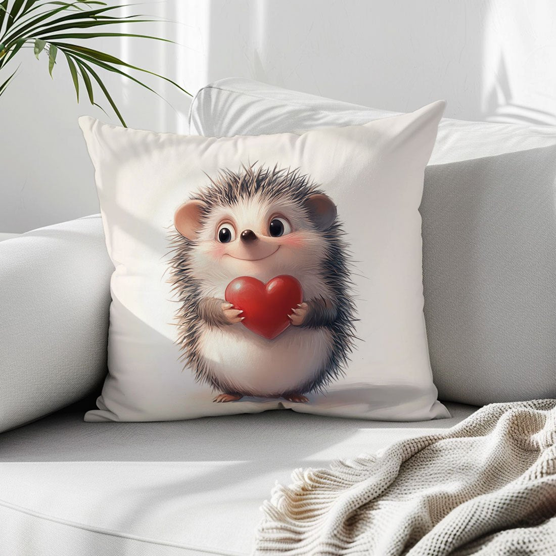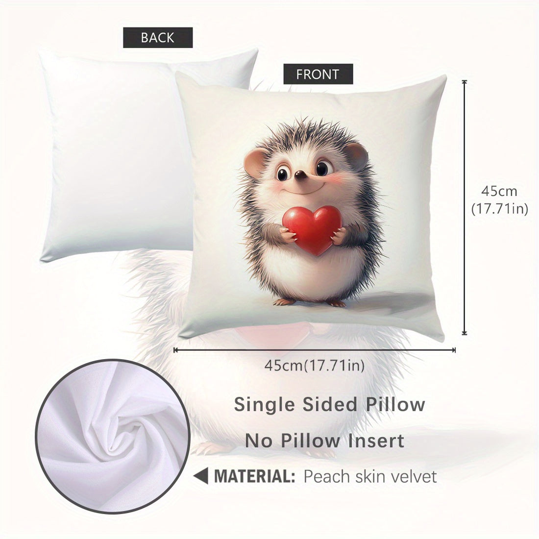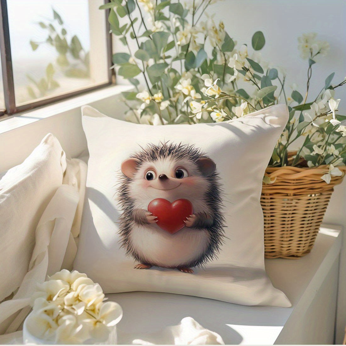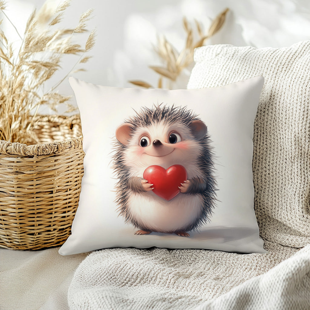 Наволочка для подушки с принтом ежика и сердца, 44.96x44.96 см - Идеально подходит для декора гостиной или спальни. Изготовлена из полиэстера, который можно стирать в машине, с застежкой на молнии. Вставка не включена.