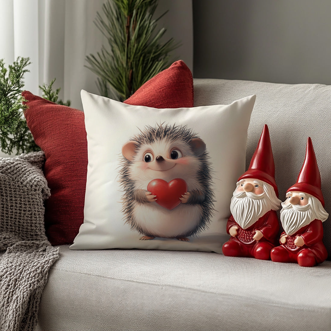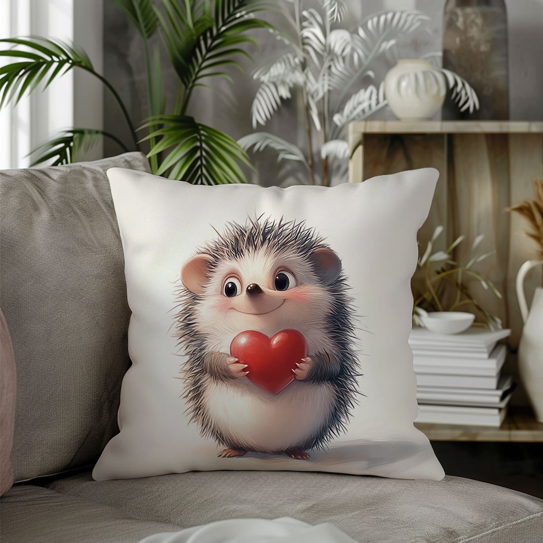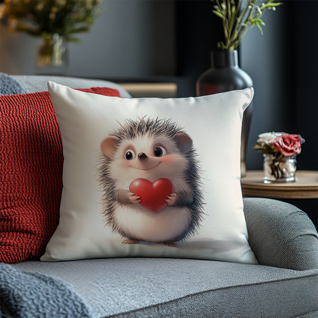 Наволочка для подушки с принтом ежика и сердца, 44.96x44.96 см - Идеально подходит для декора гостиной или спальни. Изготовлена из полиэстера, который можно стирать в машине, с застежкой на молнии. Вставка не включена.