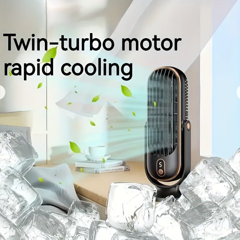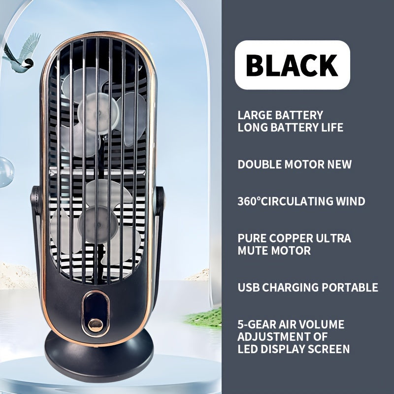 Высокопроизводительный двухмоторный портативный вентилятор с большой батареей: 5-скоростное воздушное охлаждение, окружающий воздух 720°, зарядка через USB, идеально подходит для офиса, путешествий, кемпинга, автофургона и подарков на особые случаи