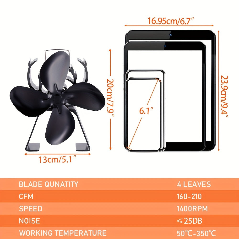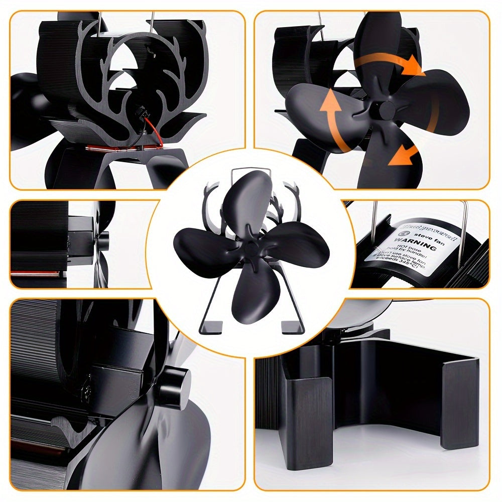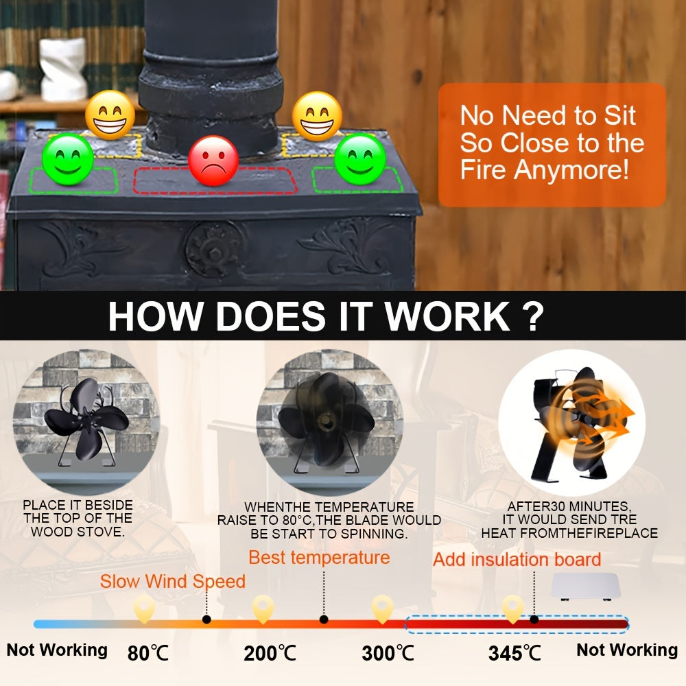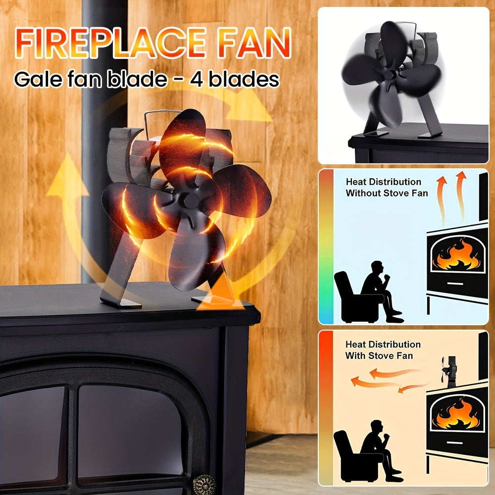 Высококачественный аксессуар для камина и дровяной печи - бесшумный 4-лопастной термоэлектрический вентилятор для печи, работающий на тепле для эффективного отопления дома