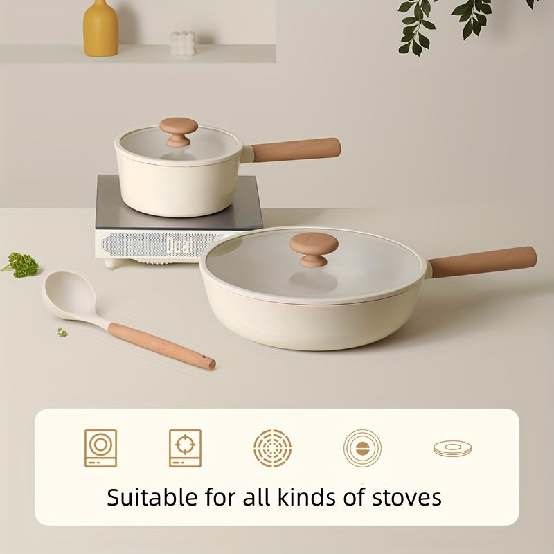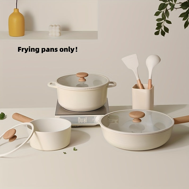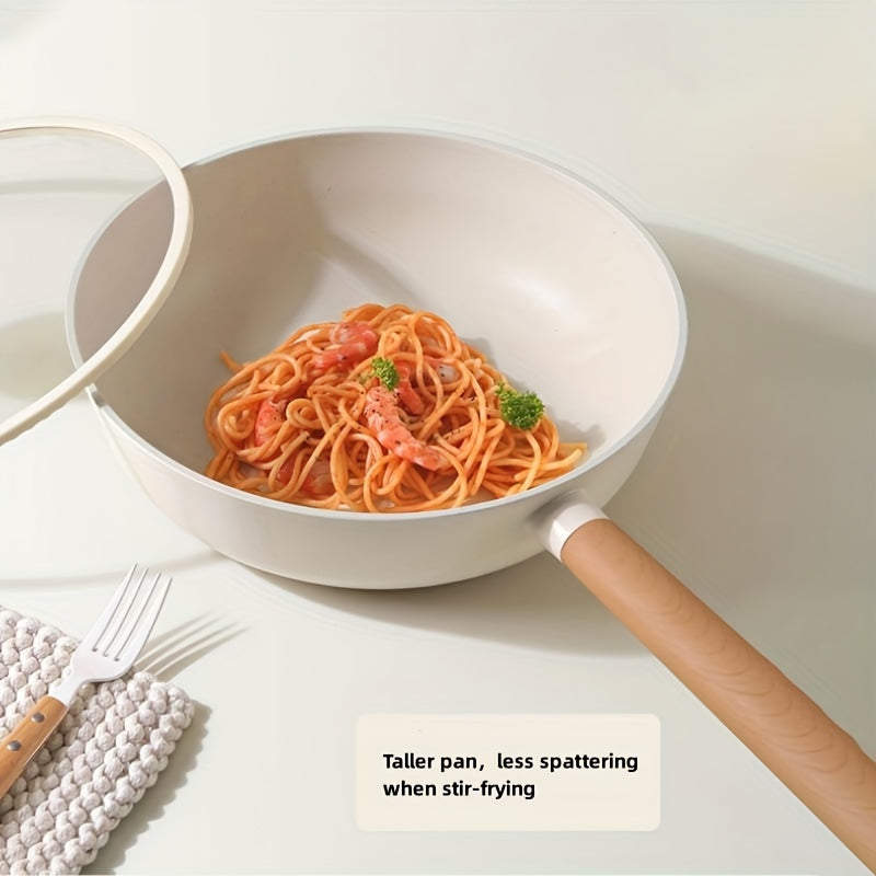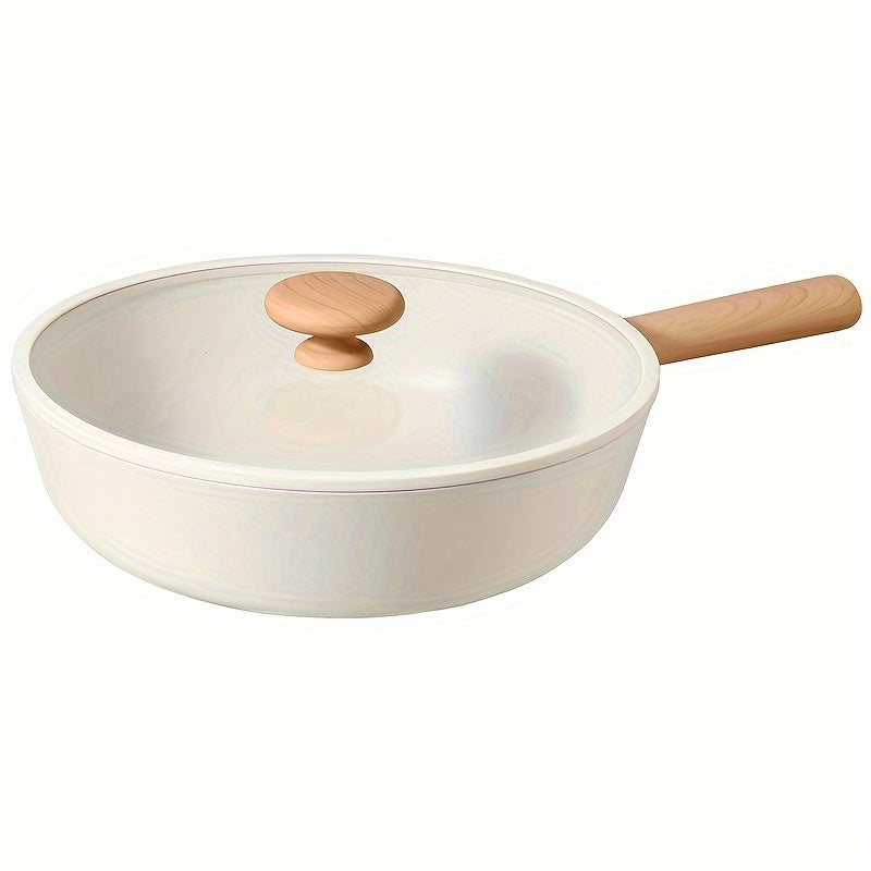Высококачественная антипригарная алюминиевая сковорода с стеклянной крышкой - долговечная, безопасная для посудомоечной машины, совместима с плитой, легкое освобождение пищи, равномерное распределение тепла, идеальна для домашней и ресторанной готовки.