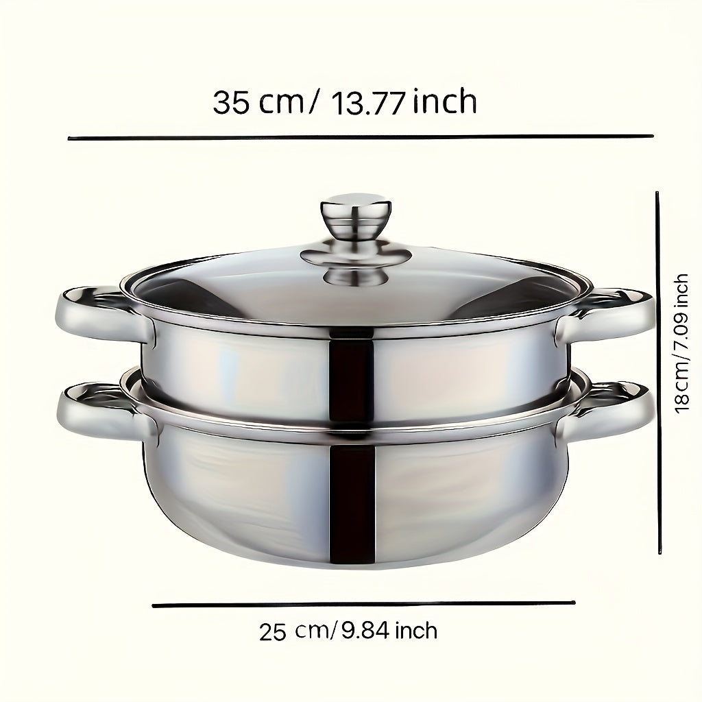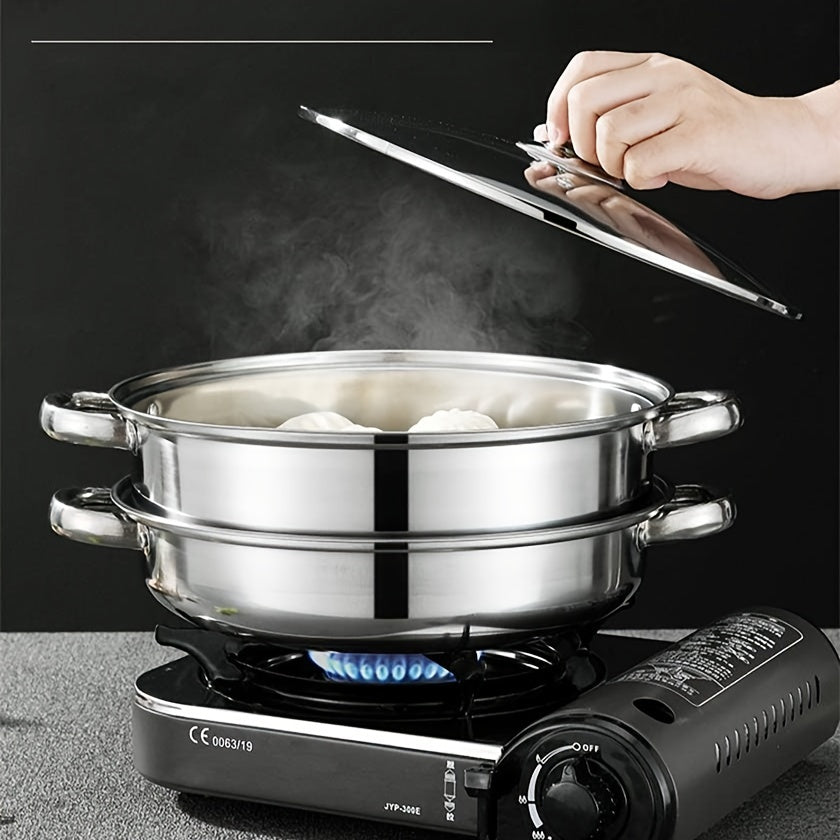 Набор пароварок из высококачественной нержавеющей стали с двойным слоем, подходящий как для индукционных, так и для газовых плит, идеально подходит для приготовления пищи и развлечений.