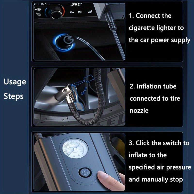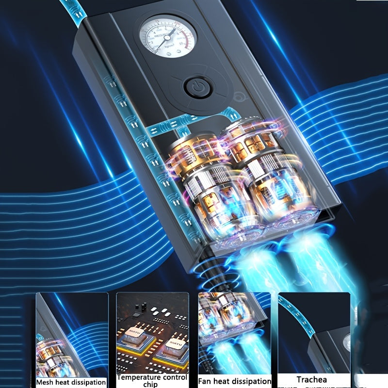 Высокоскоростной портативный воздушный компрессор с цифровым манометром для накачки автомобилей, мотоциклов, велосипедов