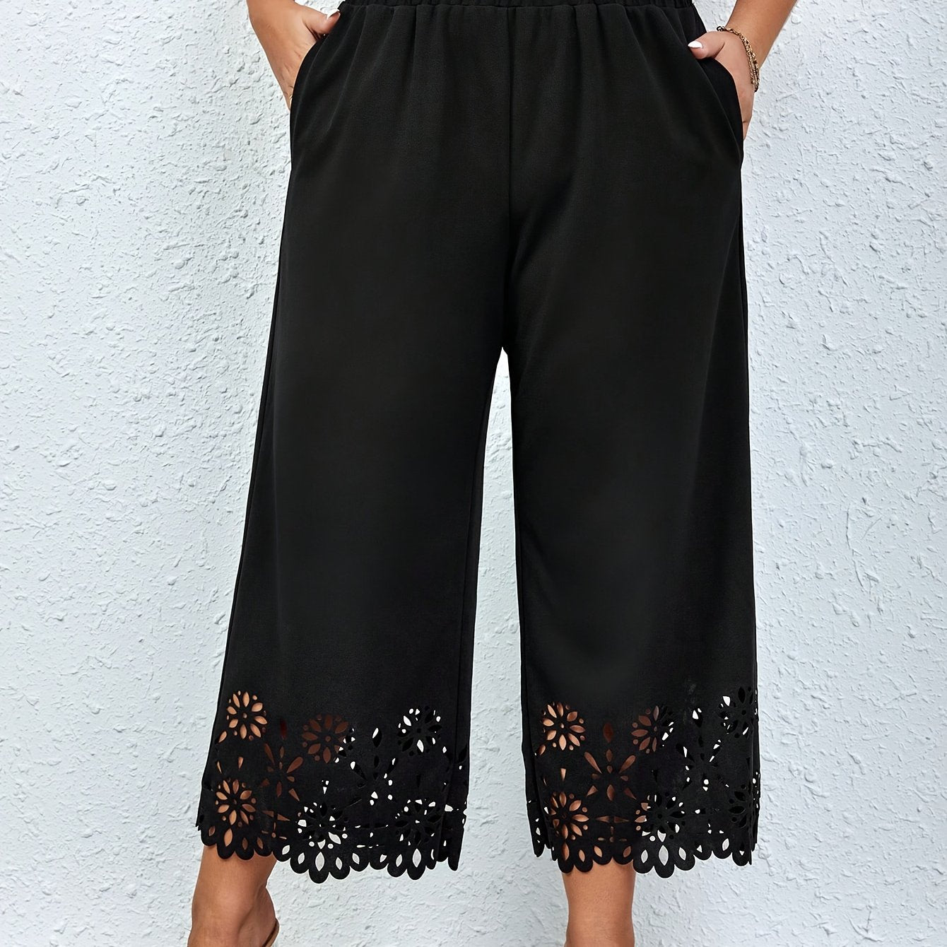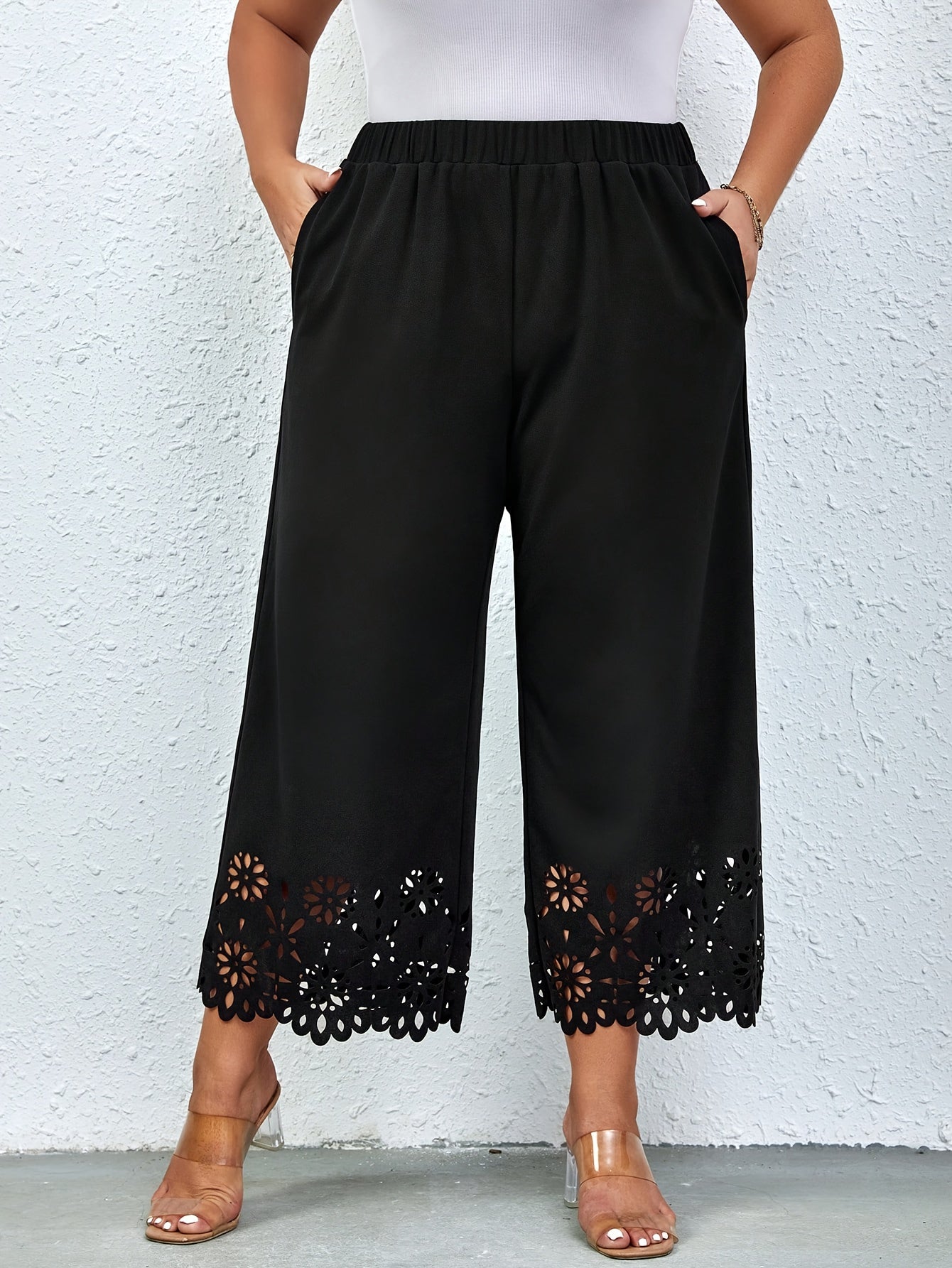 Брюки большого размера с высокой талией и широкими штанинами с косыми карманами для женщин