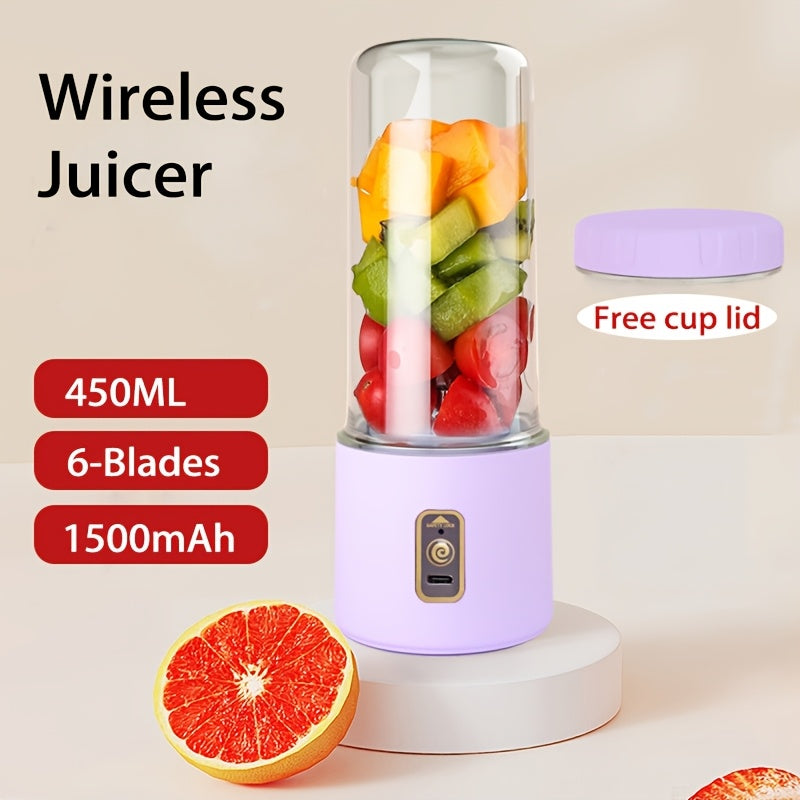 450 мл портативный электрический соковыжималка, перезаряжаемый через USB, с 6 лезвиями, пищевой пластик PP