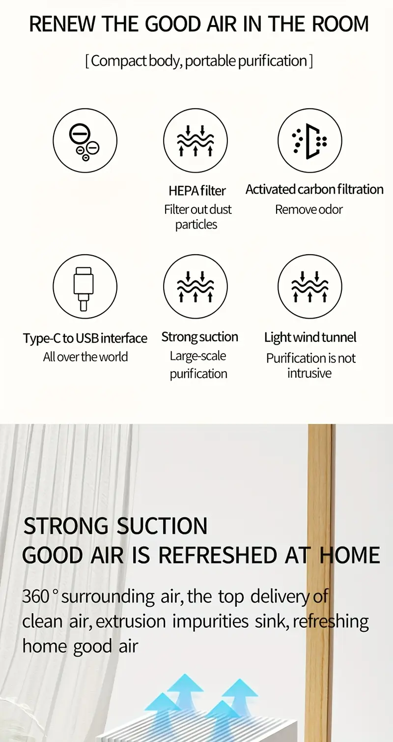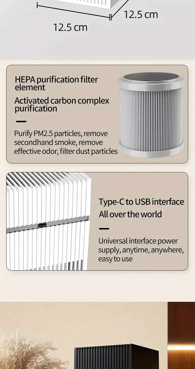 Домашний USB-очиститель воздуха для комнат и офиса, удаляющий запахи дыма