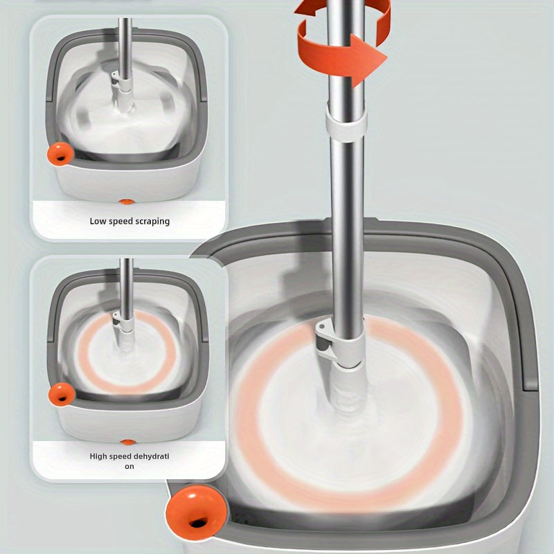 Автоматическая вращающаяся швабра для уборки дома с 2 сменными головками, удлиненной ручкой, функцией автоматического высушивания без рук, ведро в комплекте - идеально подходит для уборки полов в доме