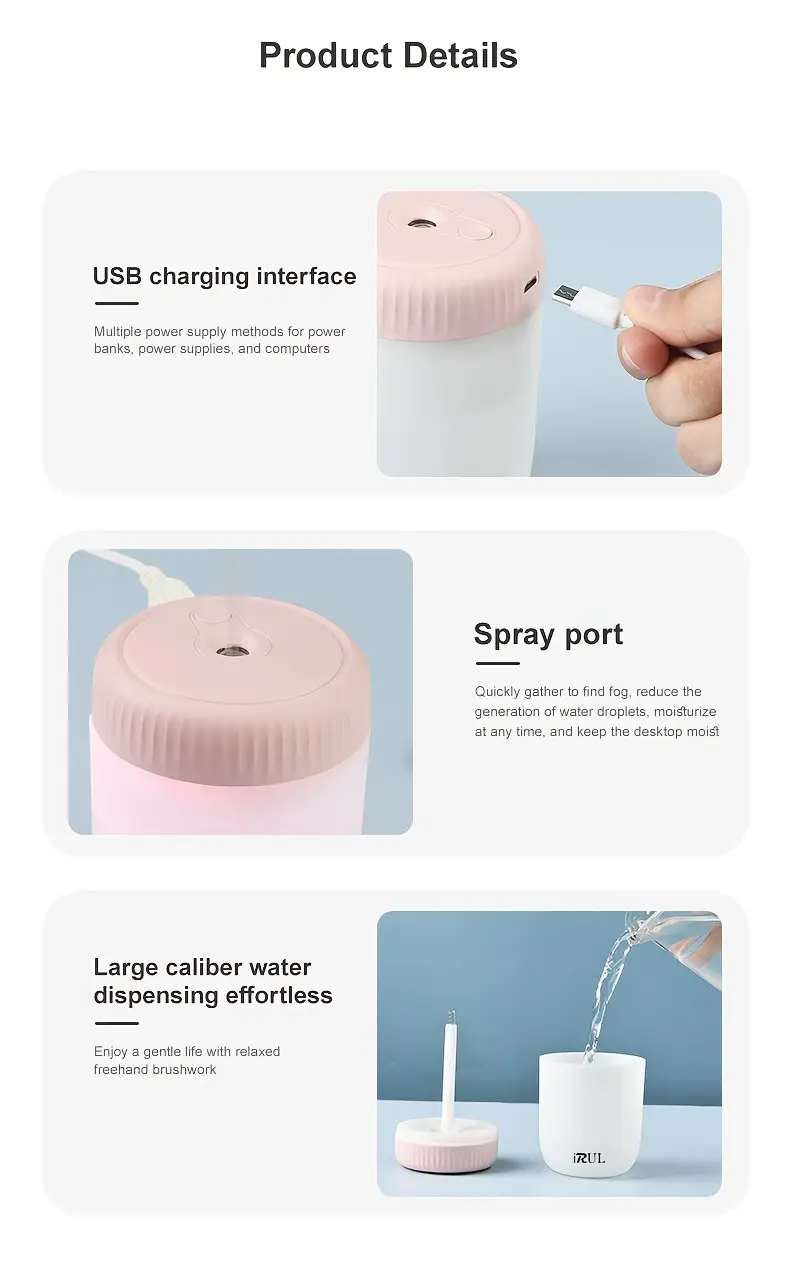 Увлажнитель с ночником, портативный USB, бесшумный, с управлением уровнем воды