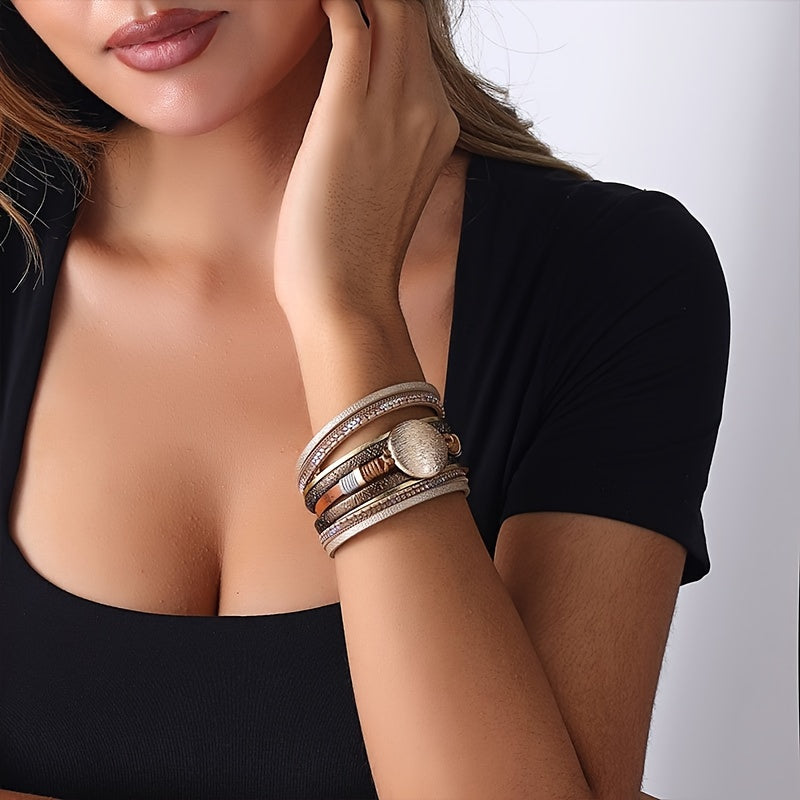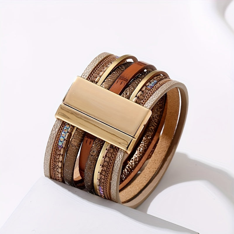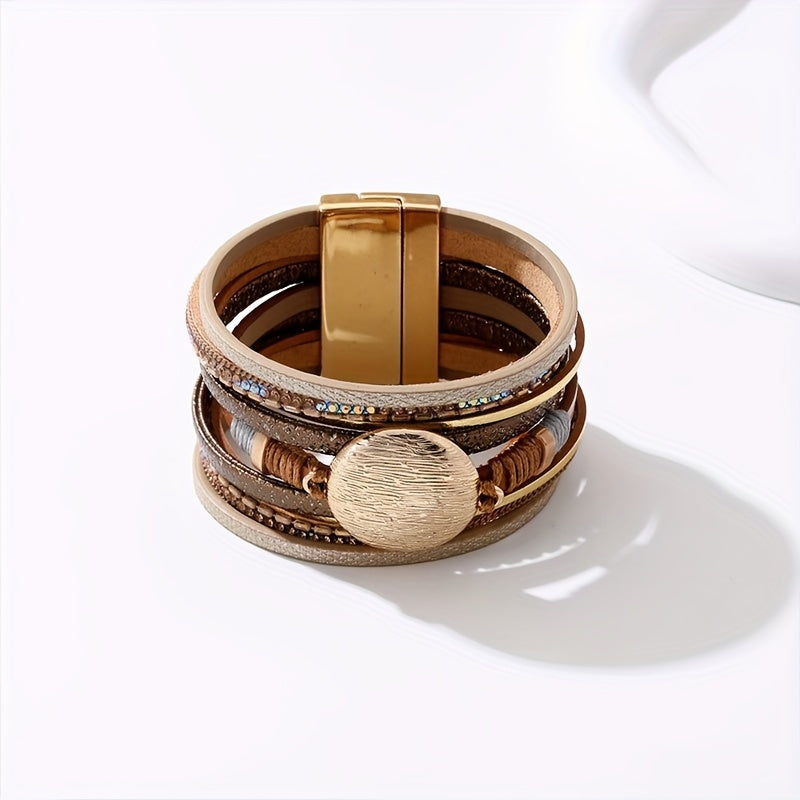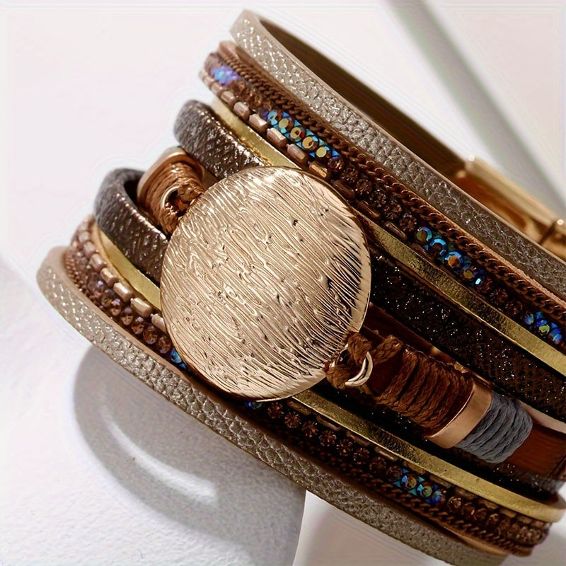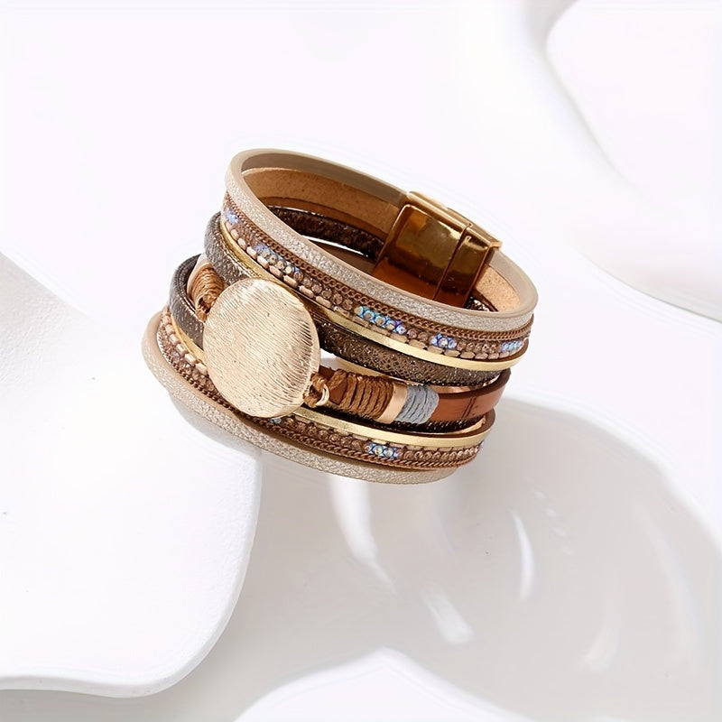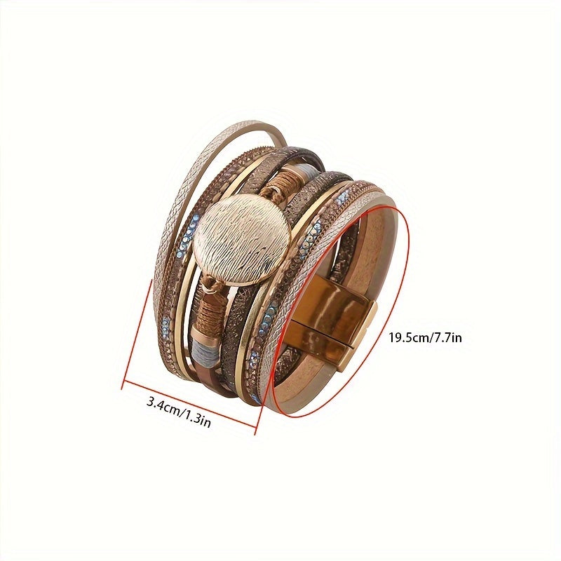 В повседневной жизни и на праздниках дополняйте образ винтажным богемным стильным многослойным браслетом из PU-кожи с магнитной застежкой.