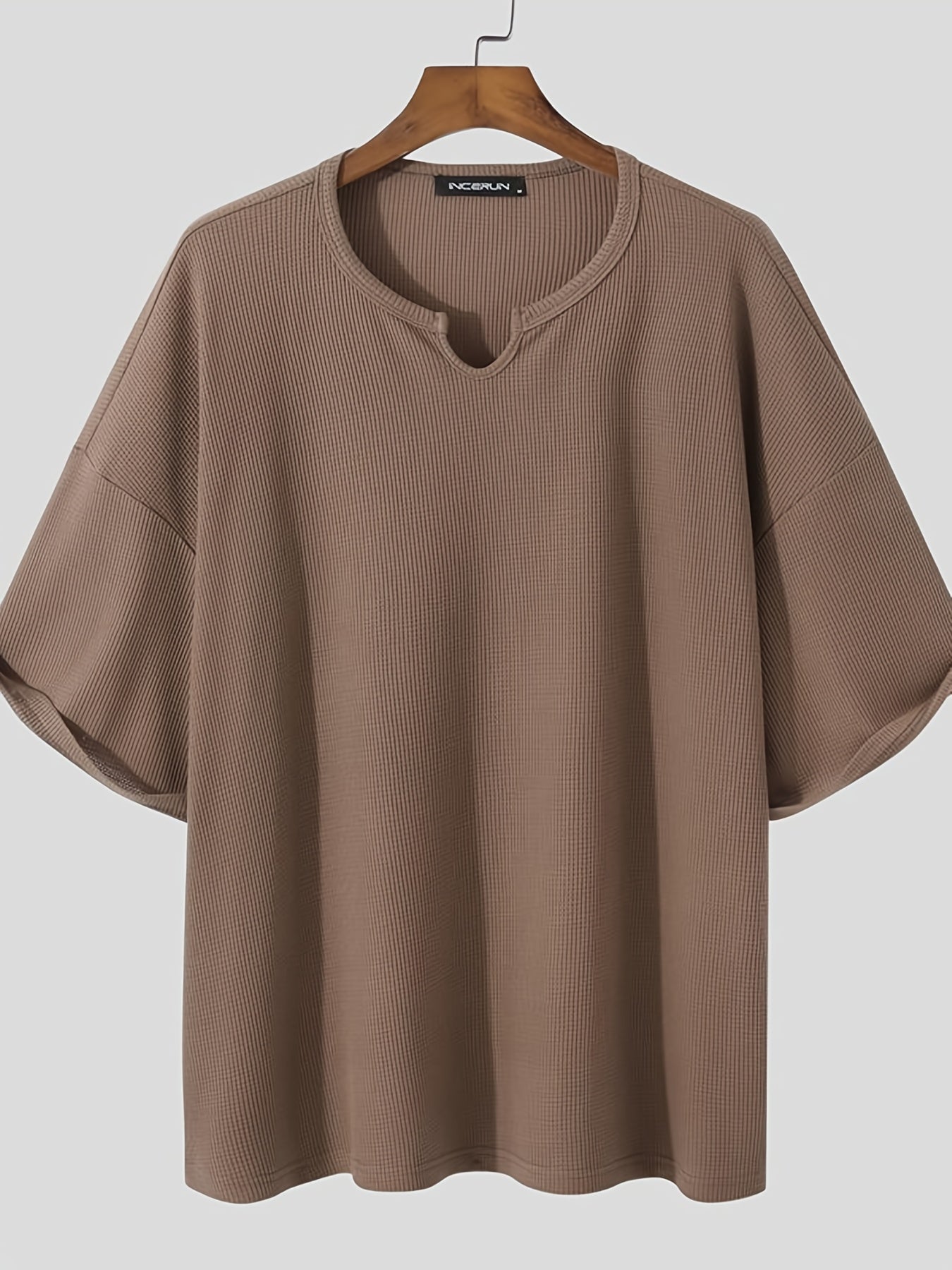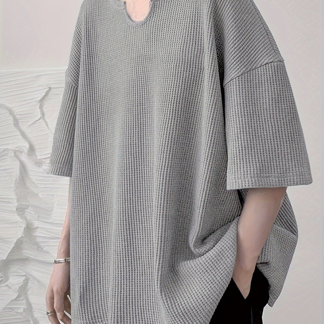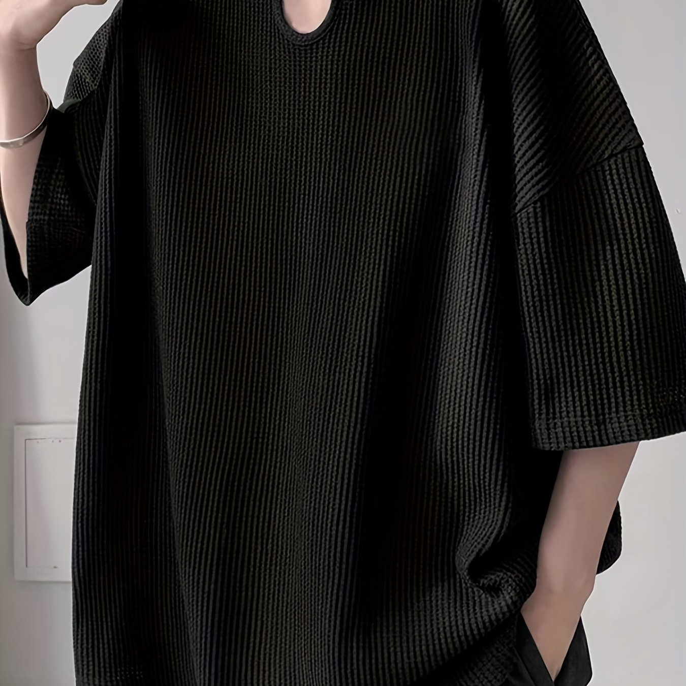 Мужская повседневная текстурированная футболка с V-образным вырезом и опущенными плечами свободного кроя для лета, размеры S-5XL