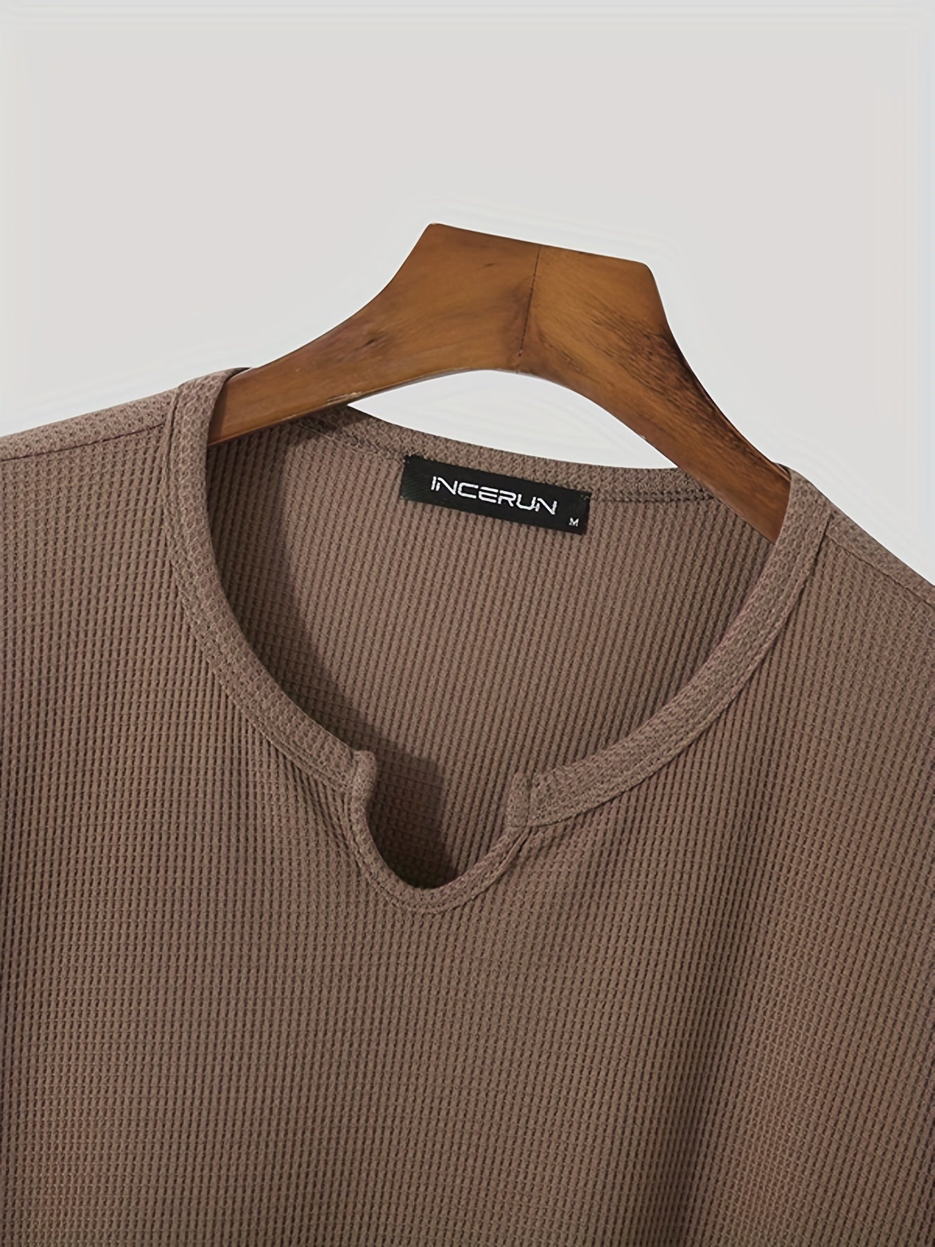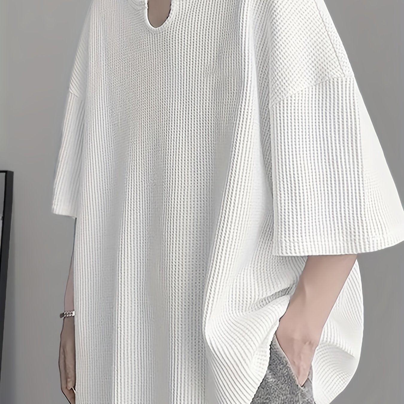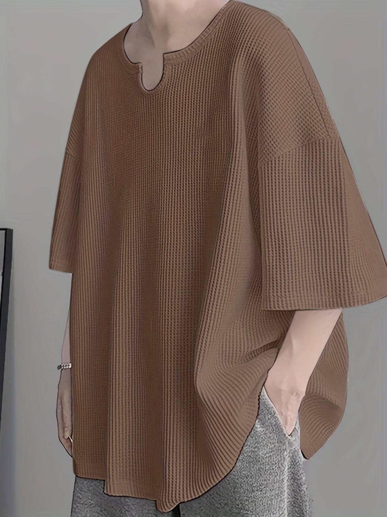 Мужская повседневная текстурированная футболка с V-образным вырезом и опущенными плечами свободного кроя для лета, размеры S-5XL