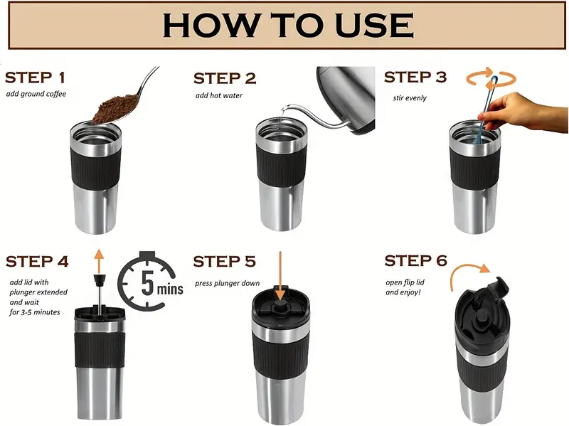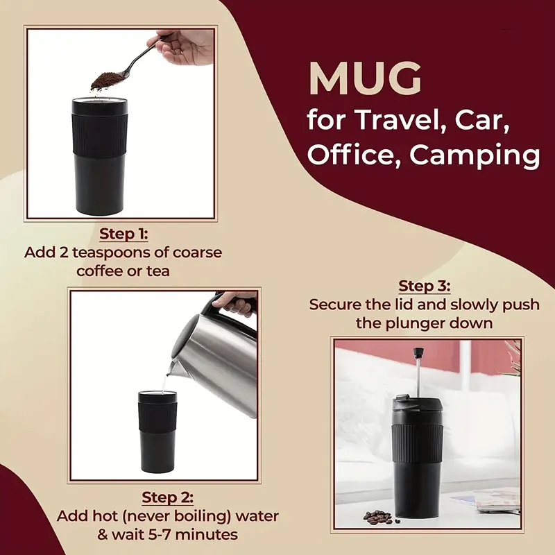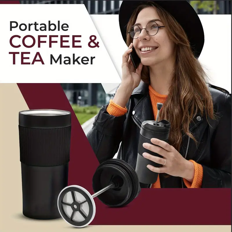 Термокружка из нержавеющей стали с двойными стенками, французский пресс, 12 унций, дорожный кофейный стаканчик