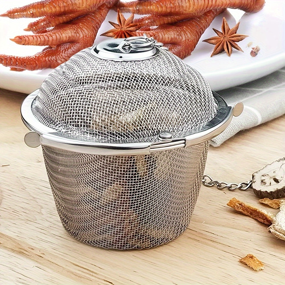 Представляем новейшую модель шарика для приправы из нержавеющей стали, которая поможет усилить вкус супов и рагу, а также оснащена специальным отсеком для заваривания чая.