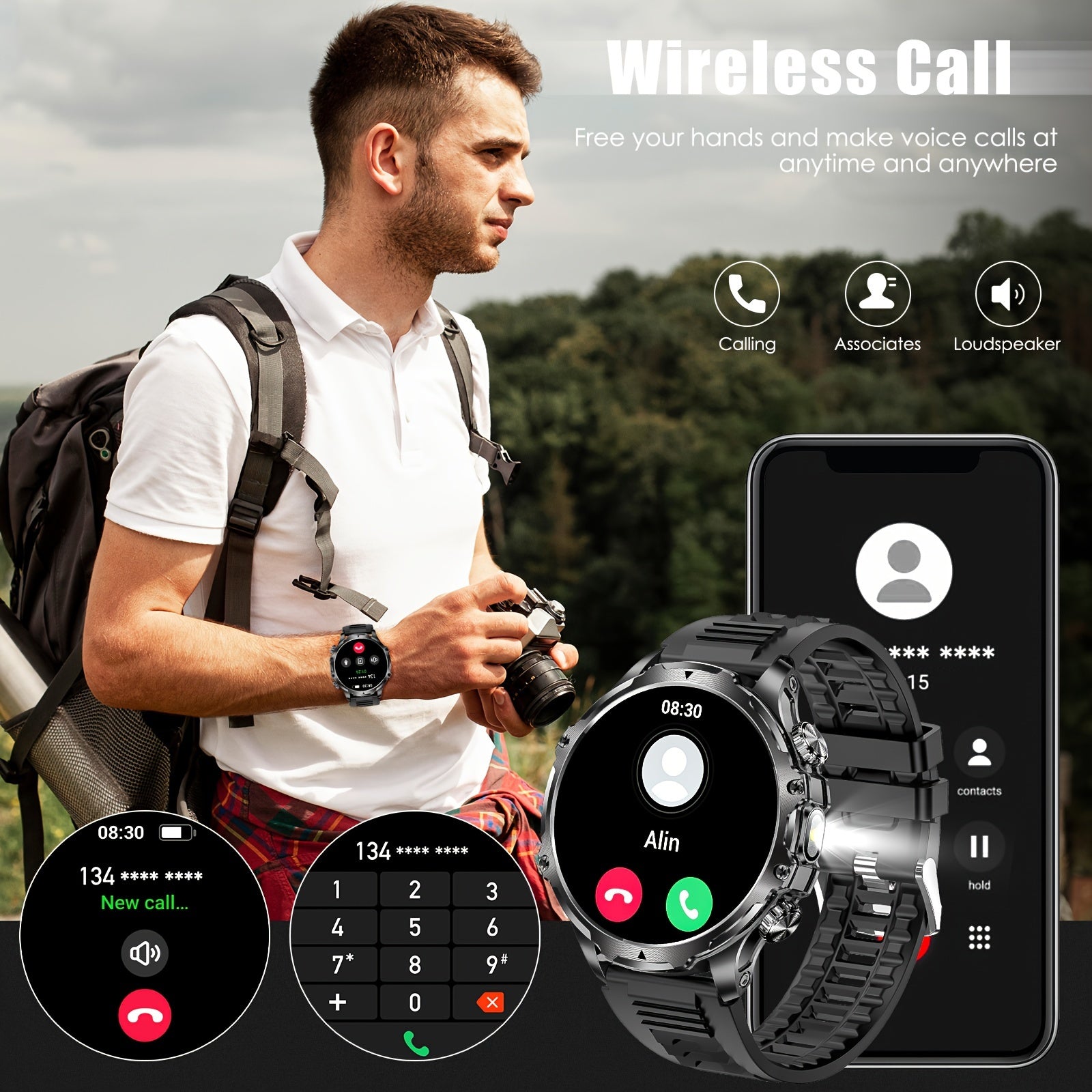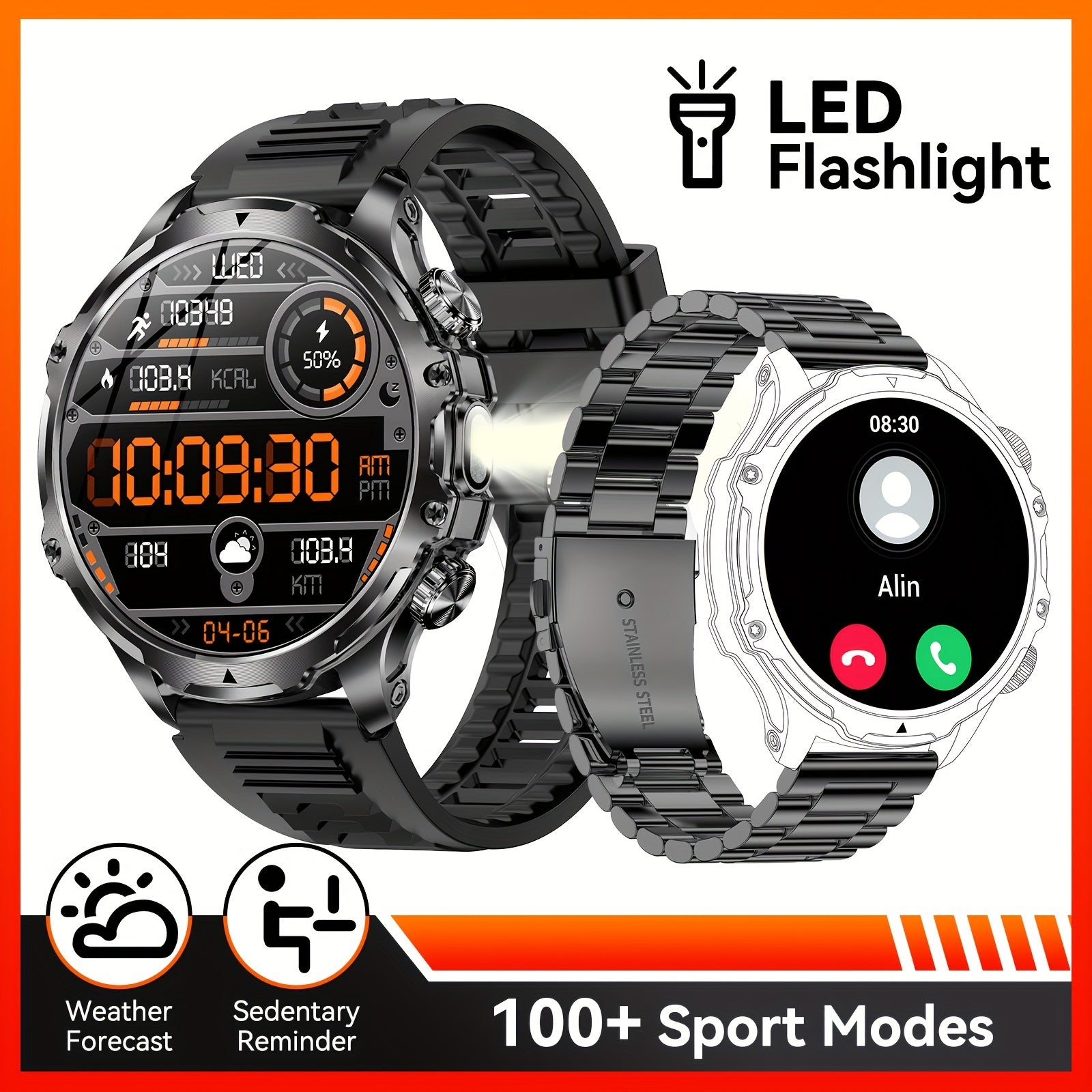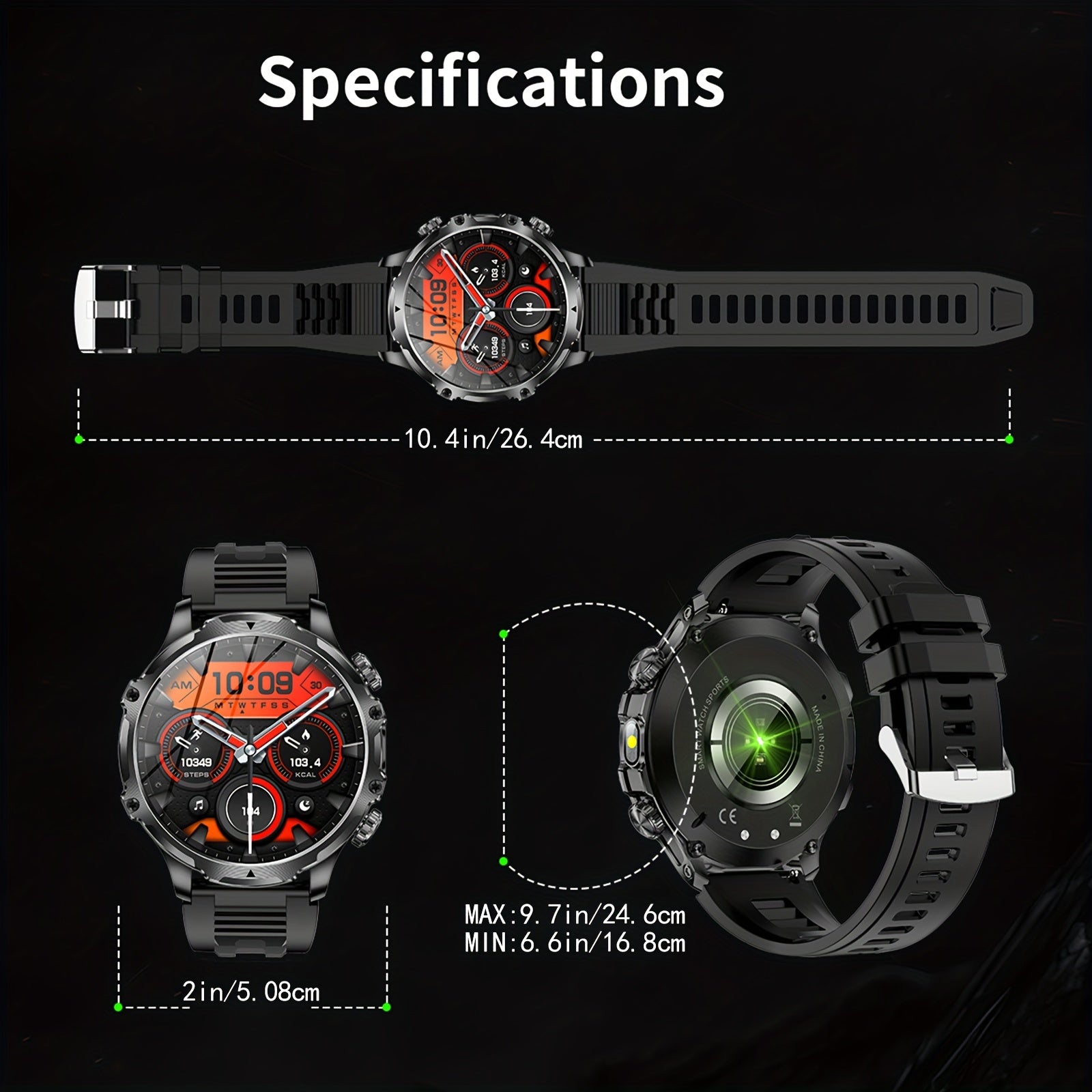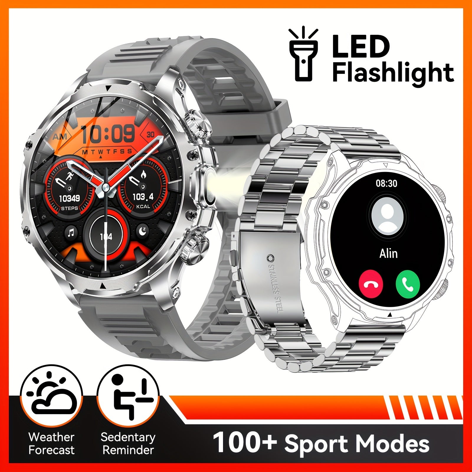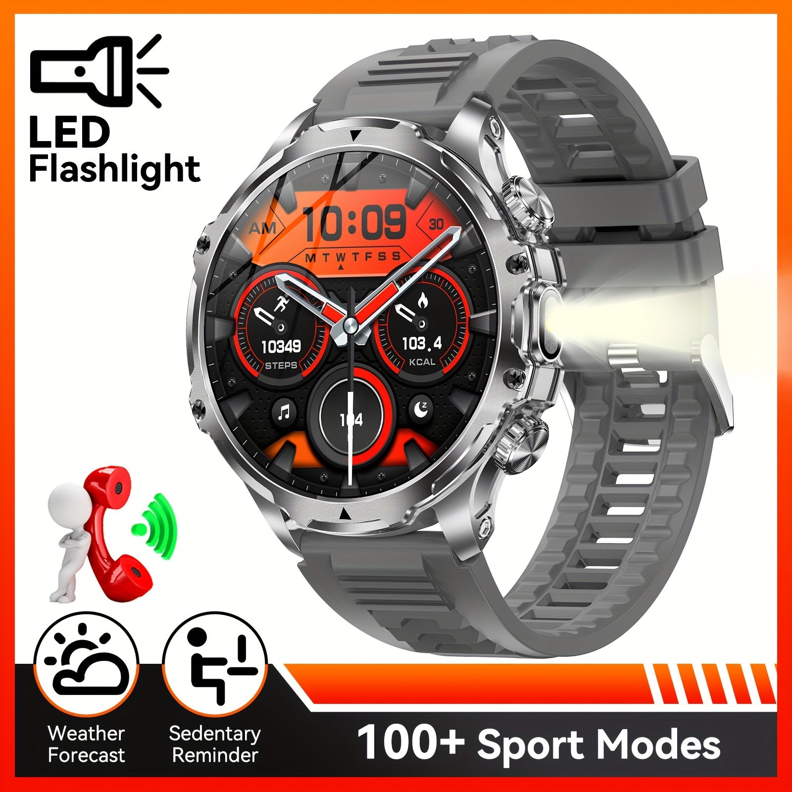 Мужские умные часы с сенсорным экраном HD 1,85 дюйма, водонепроницаемый фитнес-трекер с аккумулятором 800 мАч