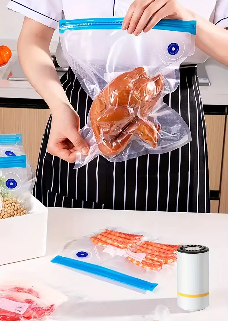 Комплект многофункциональных перезаряжаемых вакуумных запаивателей 3-в-1 с многоразовыми пакетами разных размеров для сохранения продуктов