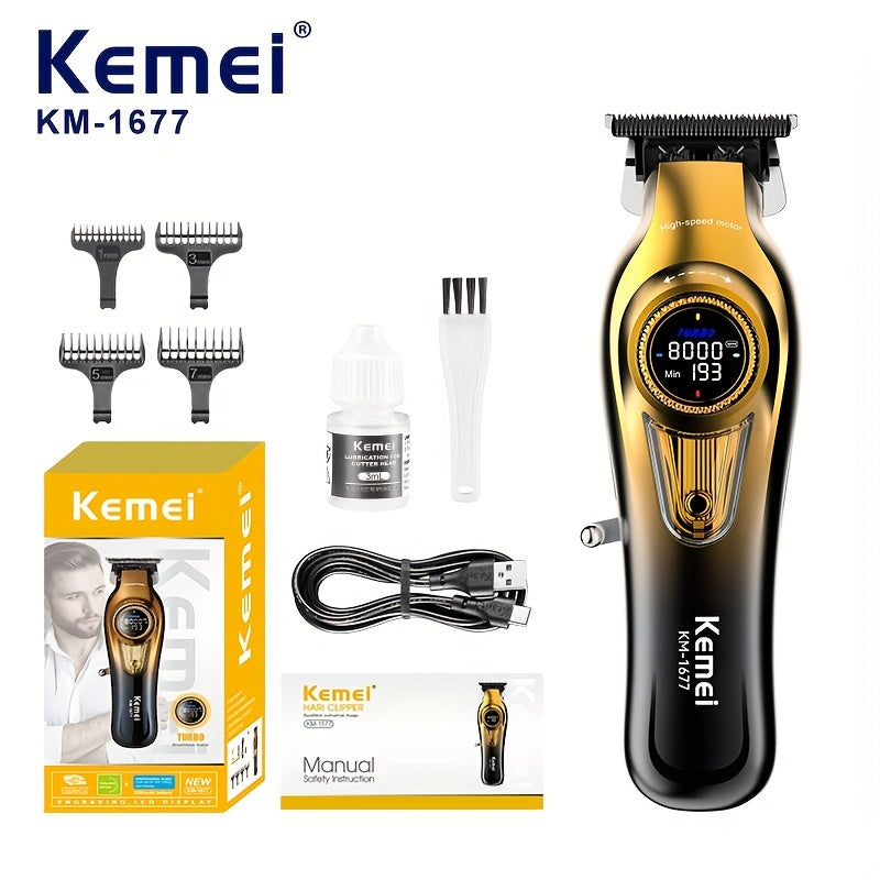 Профессиональные машинки для стрижки KEmEi KM-1677 с USB-подзарядкой, литий-ионный аккумулятор 2000мАч, мотор с медной обмоткой 8000 об/мин, керамическая лезвие, градиентный корпус ABS, цифровой дисплей, регулировка скорости