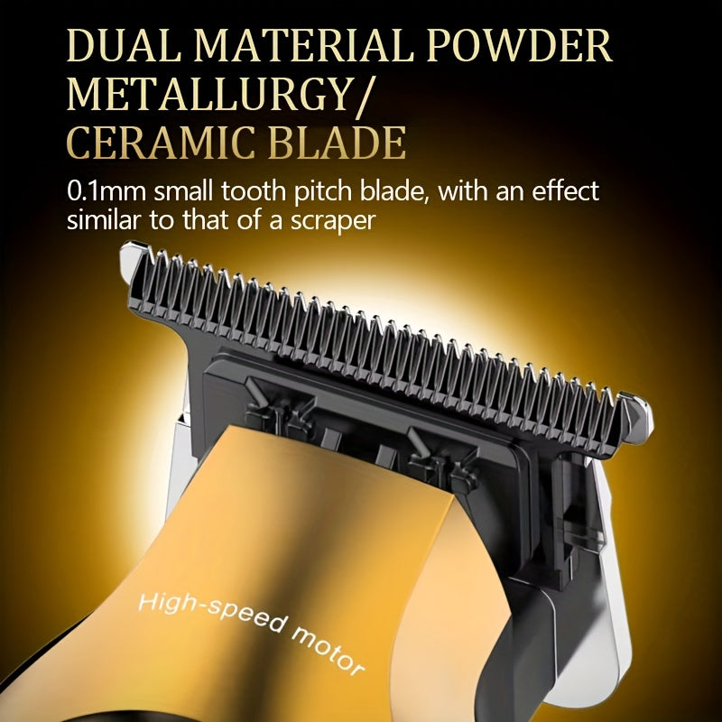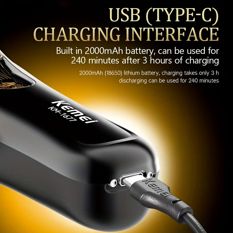 Kemei KM-1677 Профессиональный мужской машинка для стрижки с керамическими лезвиями, мотором 8000 об/мин, USB-зарядкой, регулируемой длиной, цифровым дисплеем, золотой и черной — идеально подходит для точных стрижек &