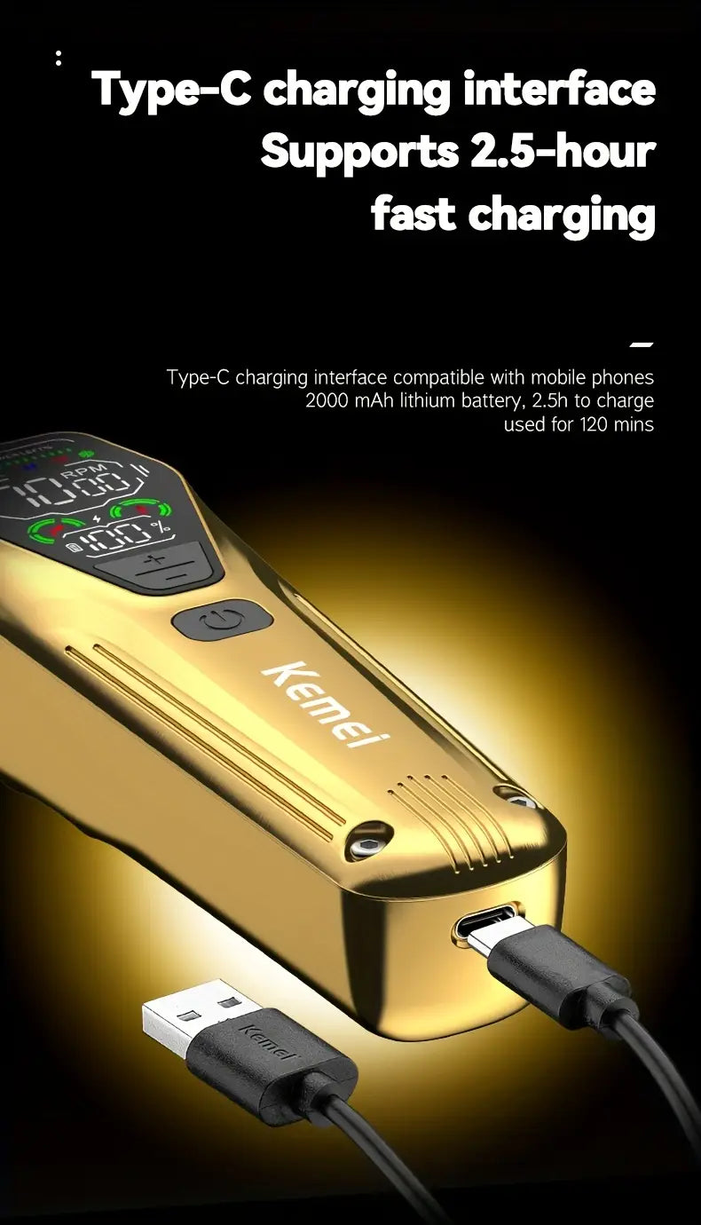 Электрическая машинка для стрижки волос с LED-дисплеем, точной резкой, быстрой зарядкой через USB для салонов и мужчин