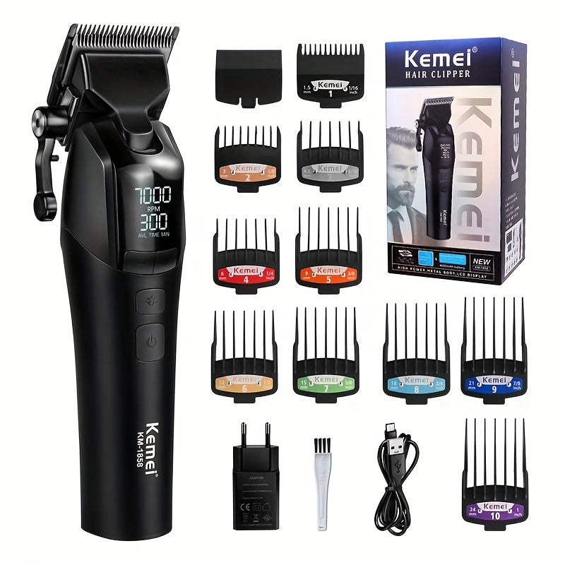 KEMEI Km-1858 DLC Blade Электрическая машинка для стрижки волос - это профессиональная беспроводная машинка для стрижки волос, которая заряжается по USB и оснащена светом.