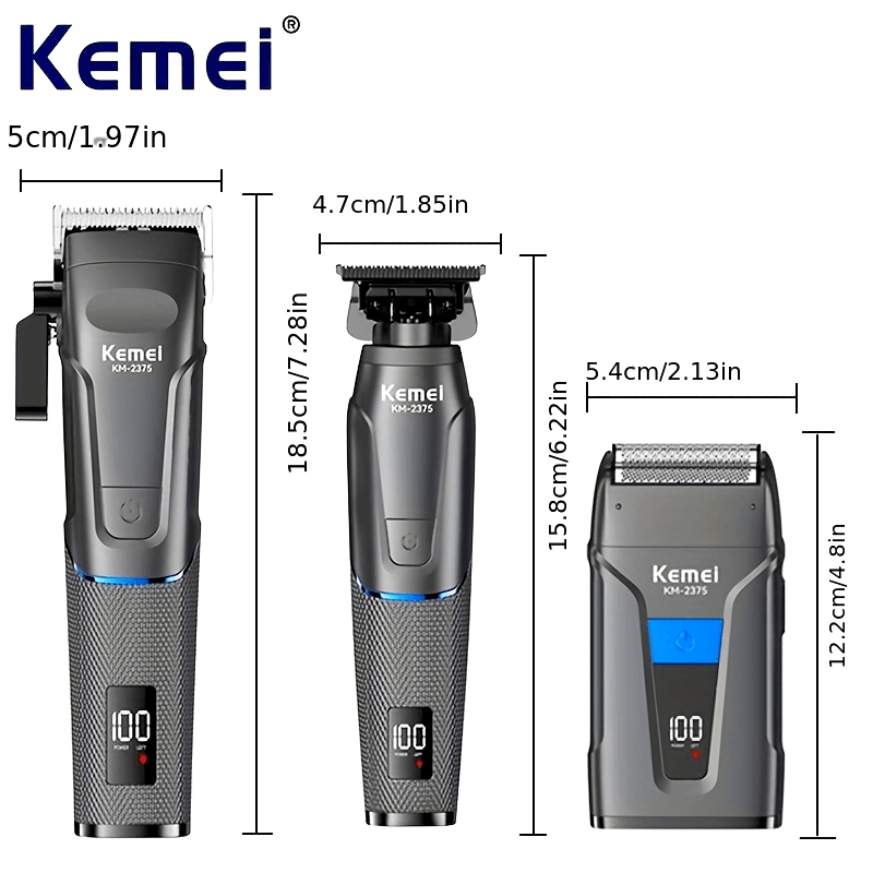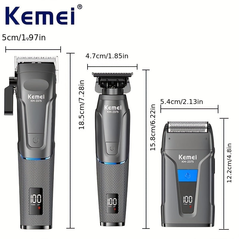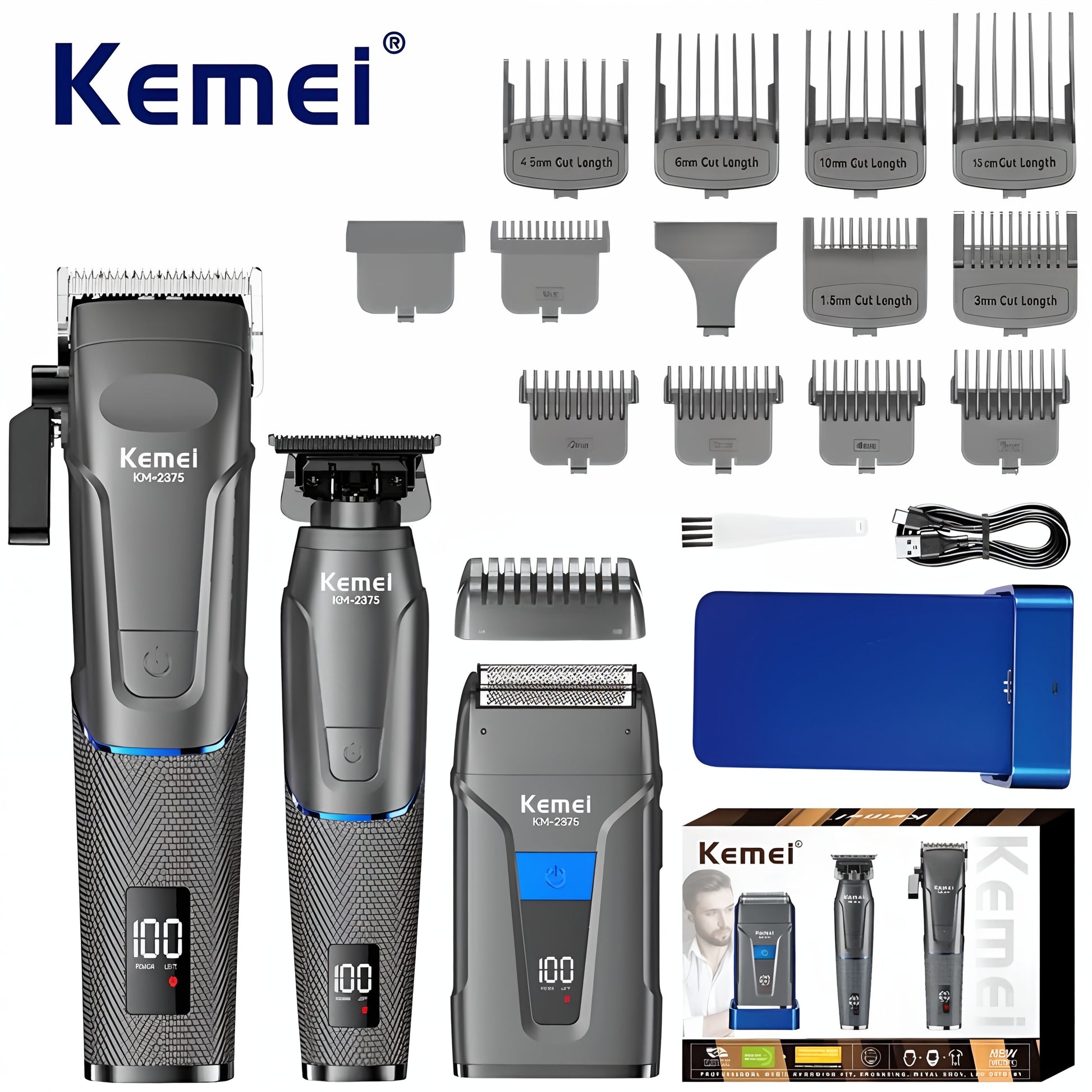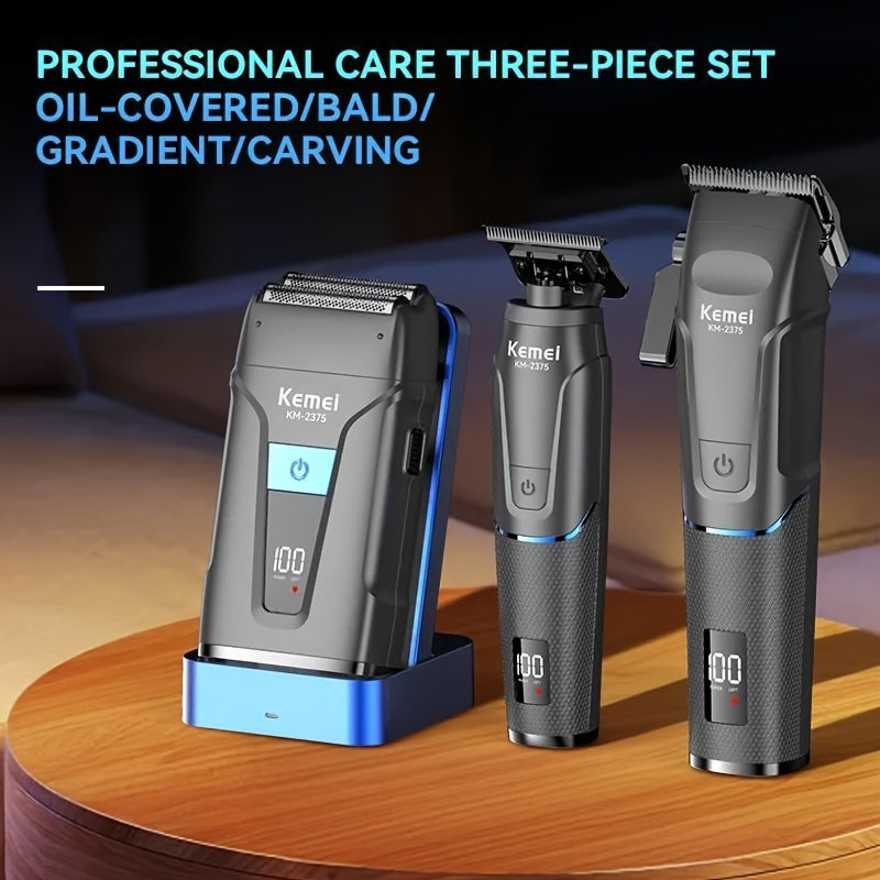 Набор машинок для стрижки волос с LED-дисплеем, 3 электробритвы, литий-ионный аккумулятор 2500 мАч, беспроводной