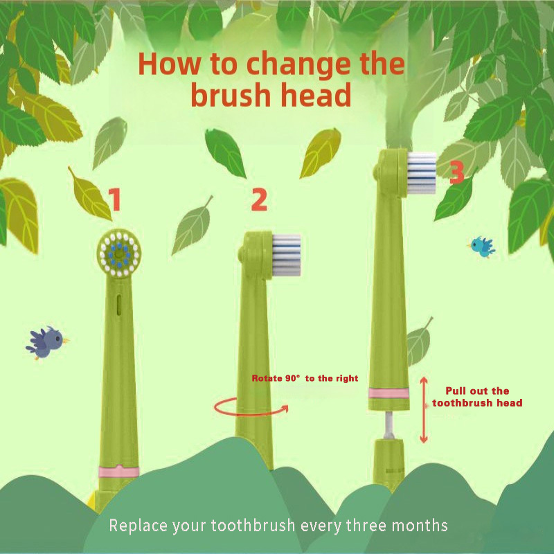 Детская электрическая зубная щетка 3 цвета Умные вращающиеся насадки Безопасная круглая головка