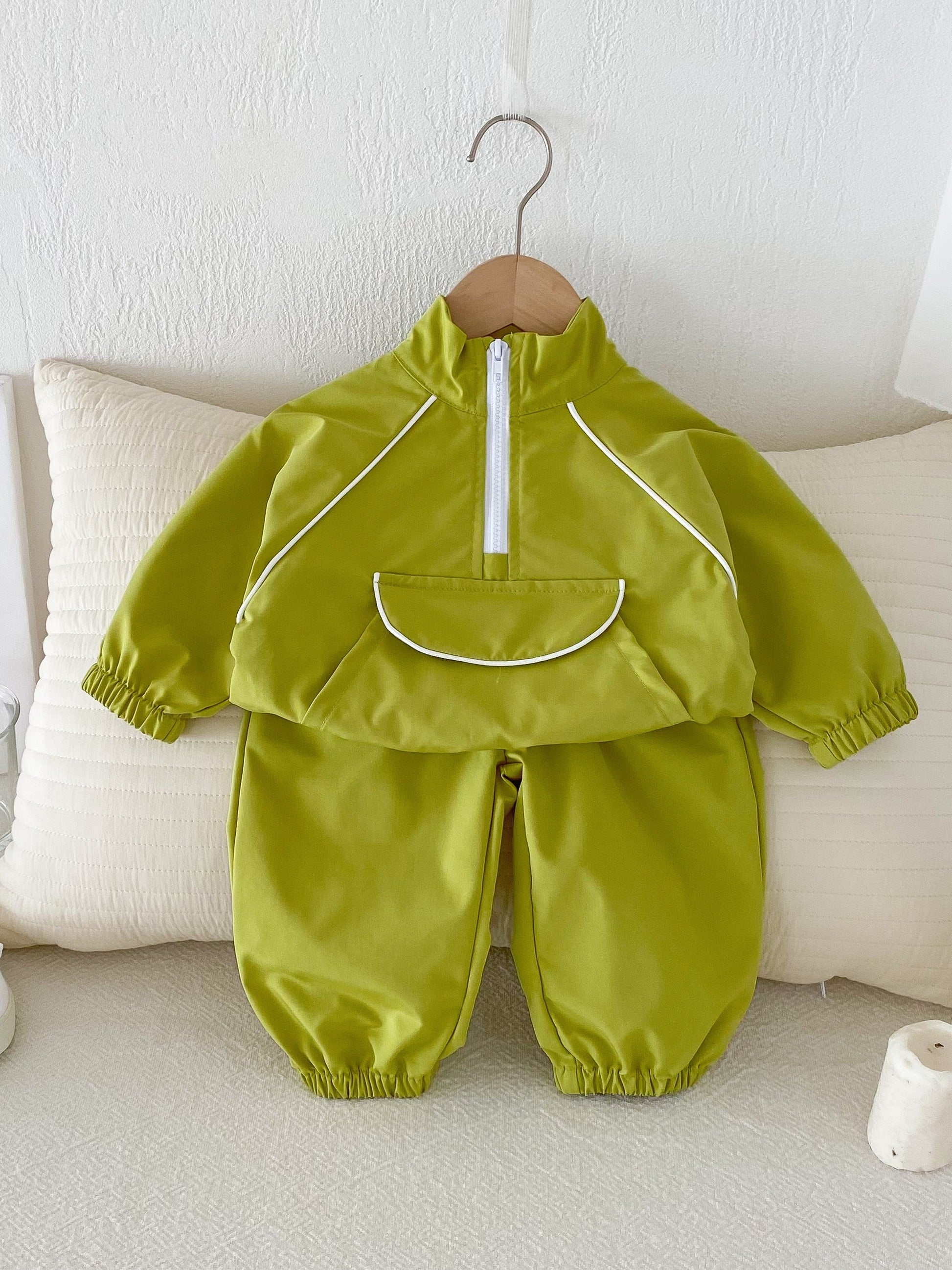 Детский унисекс осенний повседневный комплект из полиэстера с длинным рукавом, однотонный, классический крой, большие карманы
