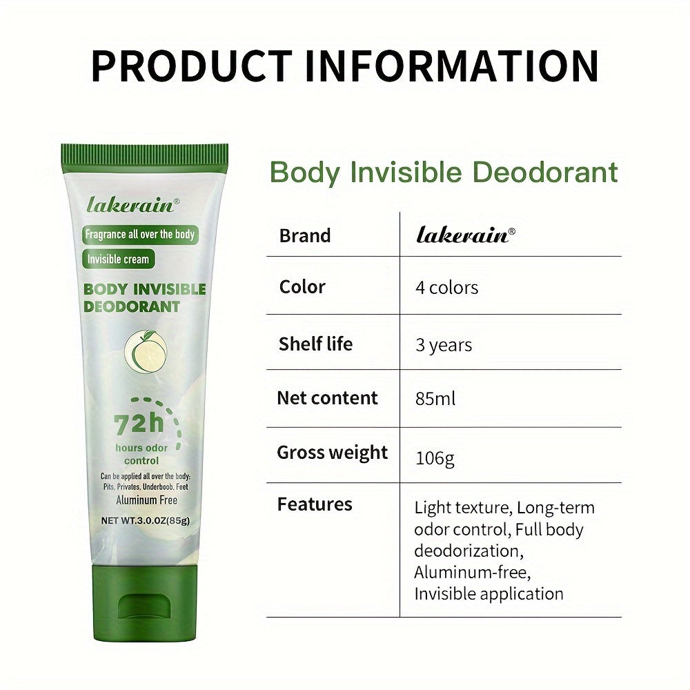 Lakerain Невидимый Дезодорант для Тела, 72 Часа Защиты от Запаха, Без Аллюминия, 3.0Oz (85G)