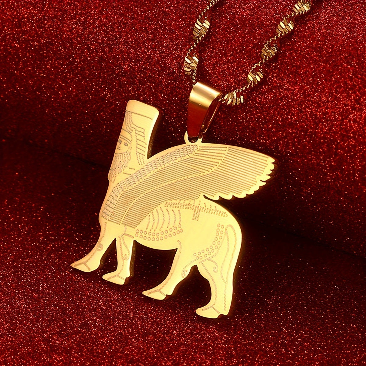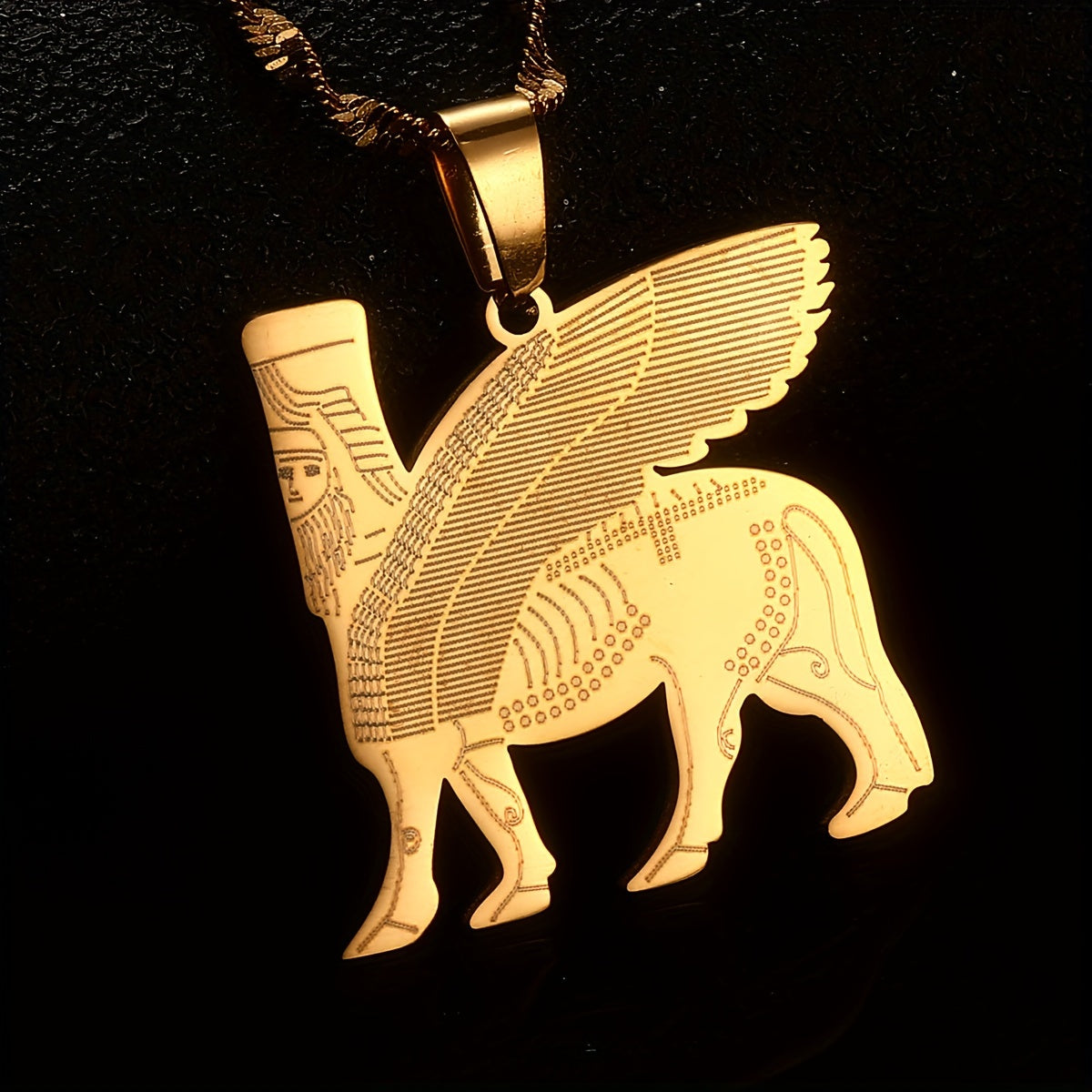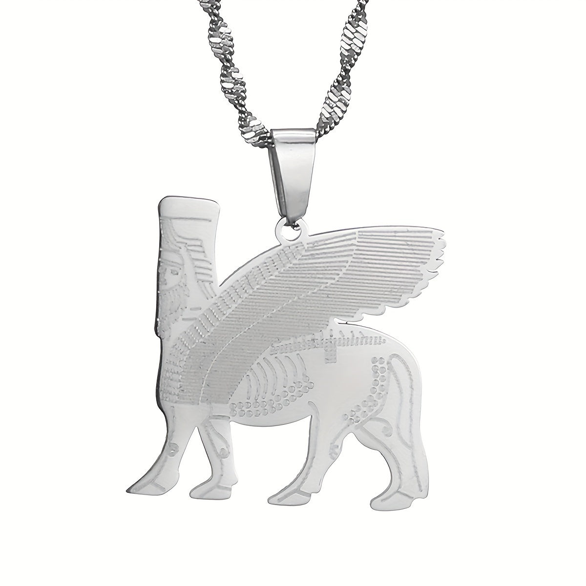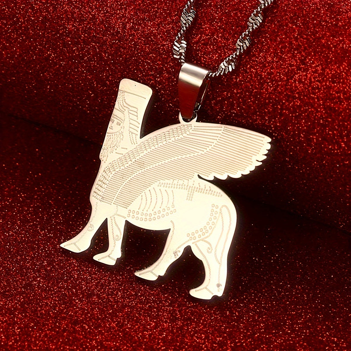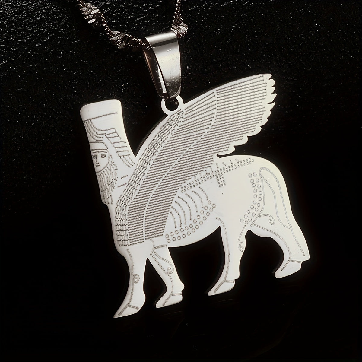 Подвеска-ожерелье Ламассу, ассирийское божество, из нержавеющей стали - идеально подходит как для повседневной носки, так и для вечеринок.