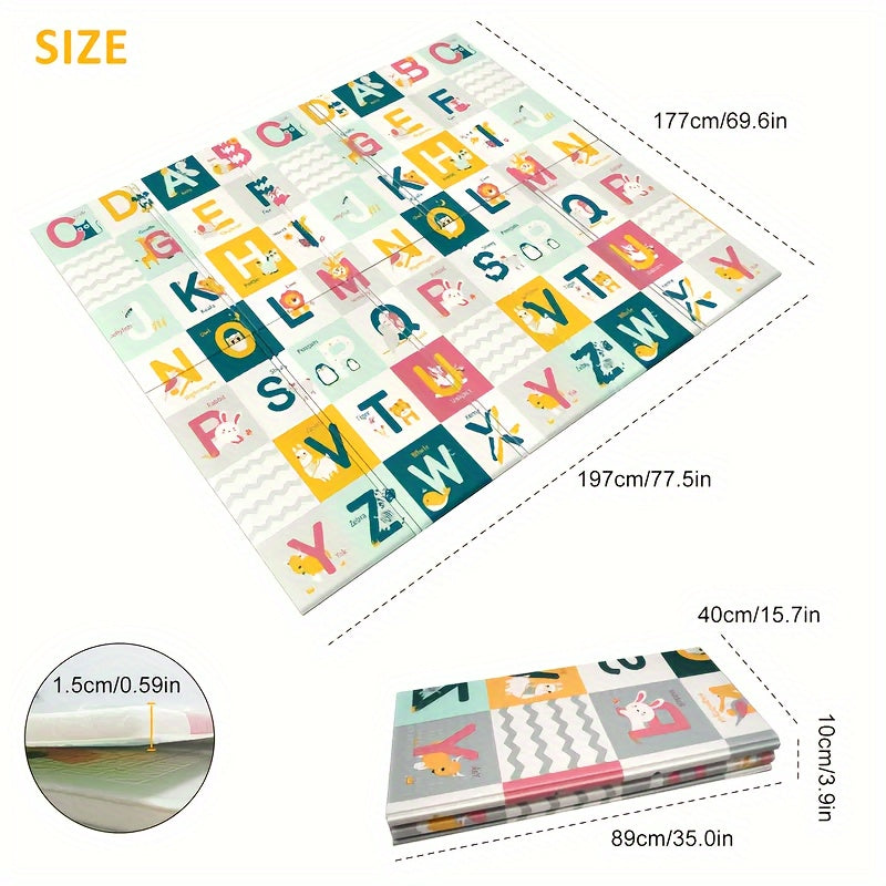 Большой складной игровой коврик CANMALCHI, предназначенный для детей в возрасте от 6 до 14 лет, водонепроницаем и двусторонний, с изображением букв и цифр. Этот образовательный ПВХ-коврик имеет морскую тематику и легко чистится, размеры 199,9x179,83 см.