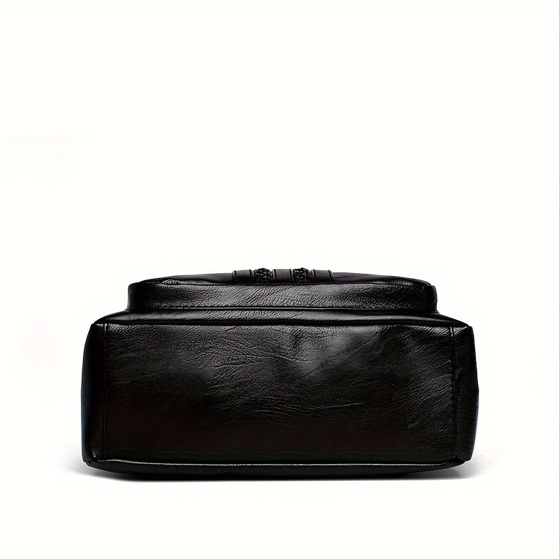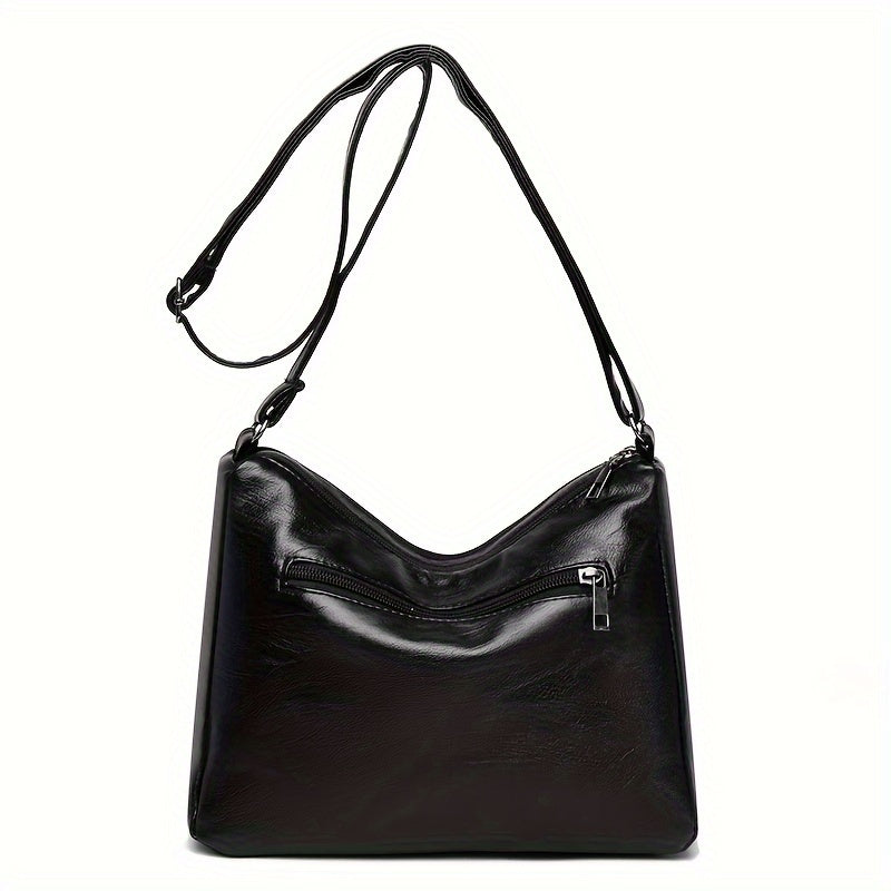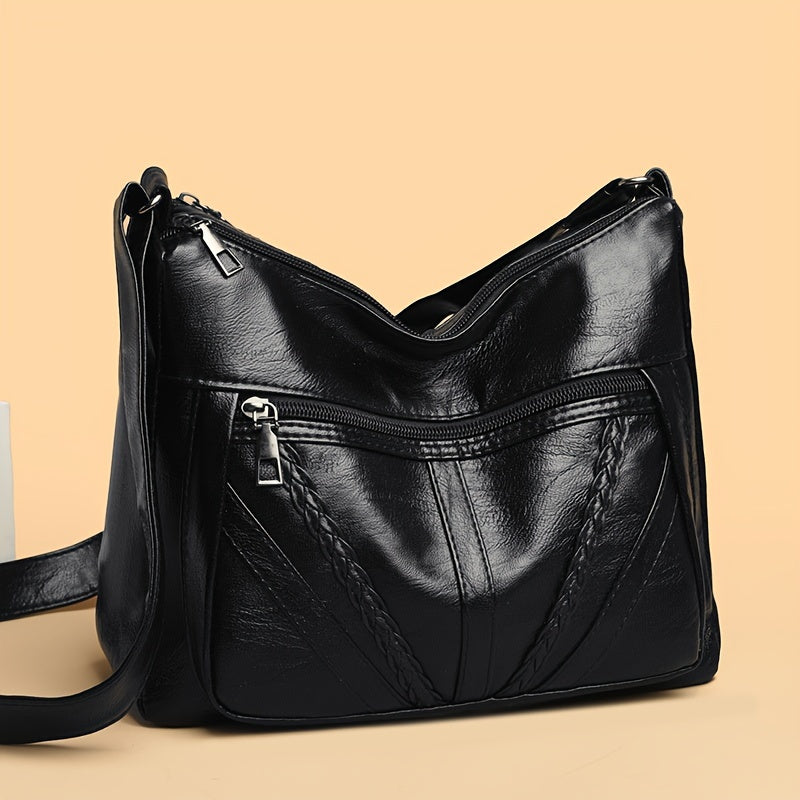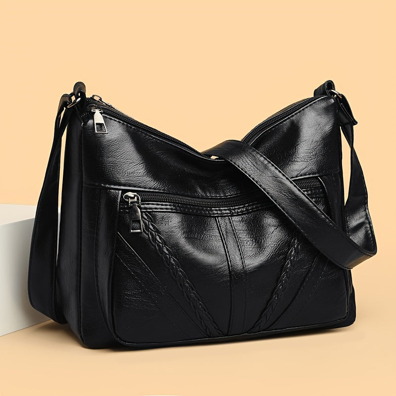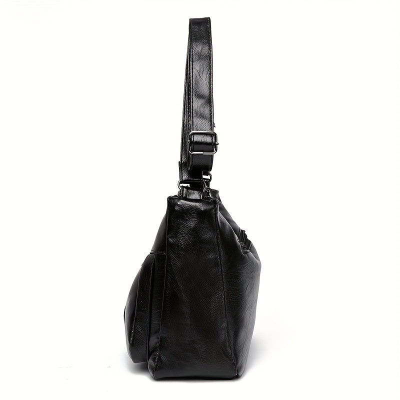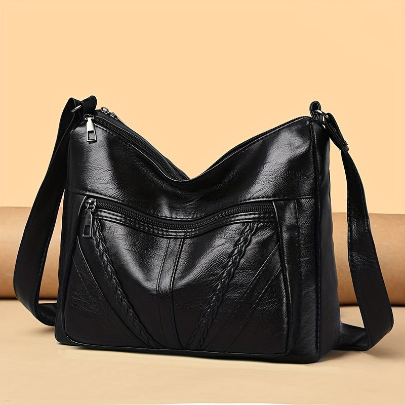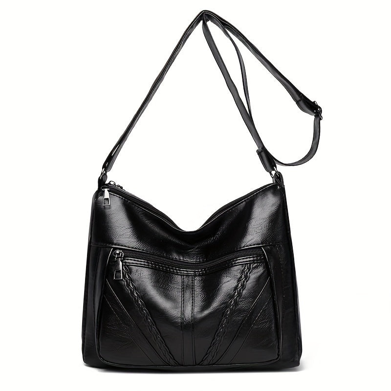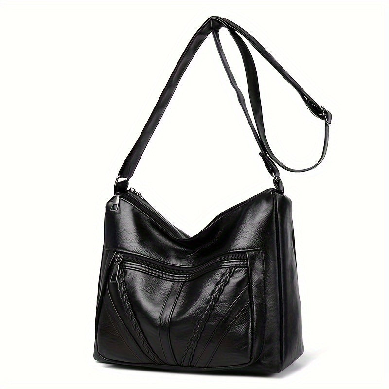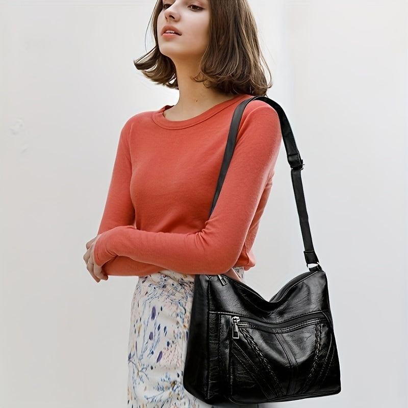 Большая вместительная сумка через плечо для женщин, черный ПУ, застежка-молния