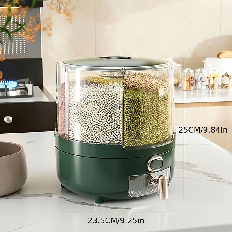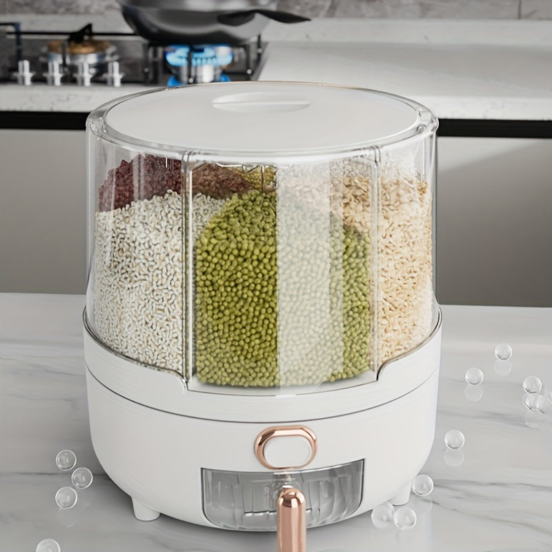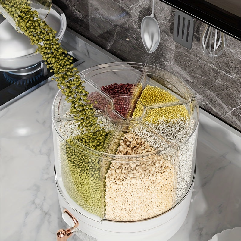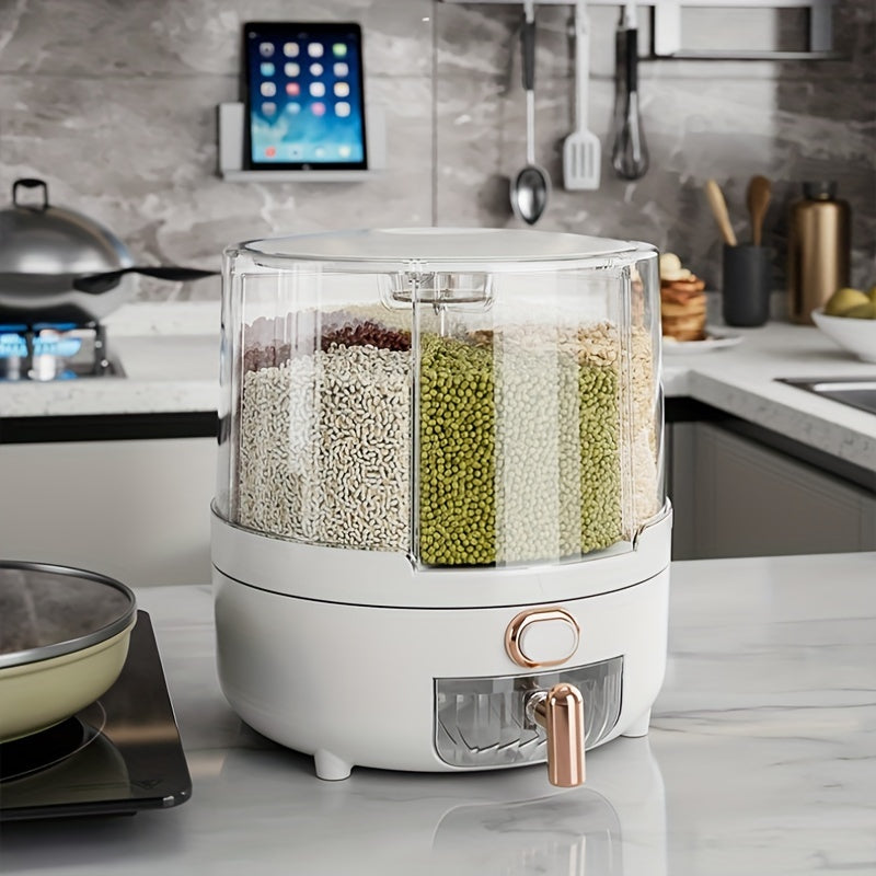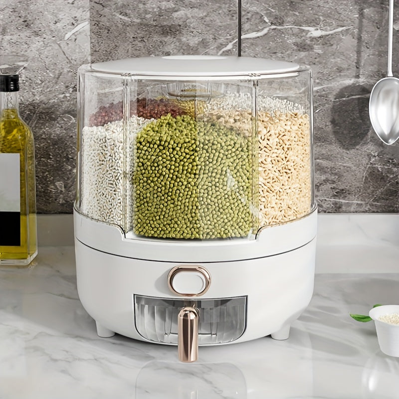 Большой ёмкости диспенсер для риса с несколькими отсеками - разработан для вращения, устойчив к насекомым и влаге, идеален для хранения зерна в домашних условиях