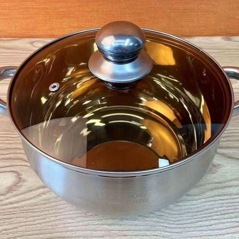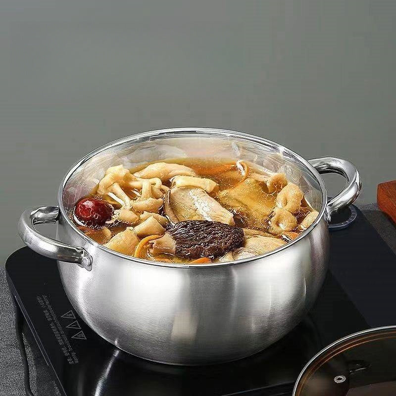 Большая емкость из нержавеющей стали для супа в форме барабана, идеально подходит для приготовления различных блюд, таких как суп, каша и тушеная курица. Этот утолщенный домашний яблочный горшок является универсальным и незаменимым кухонным инструментом.