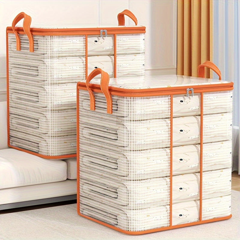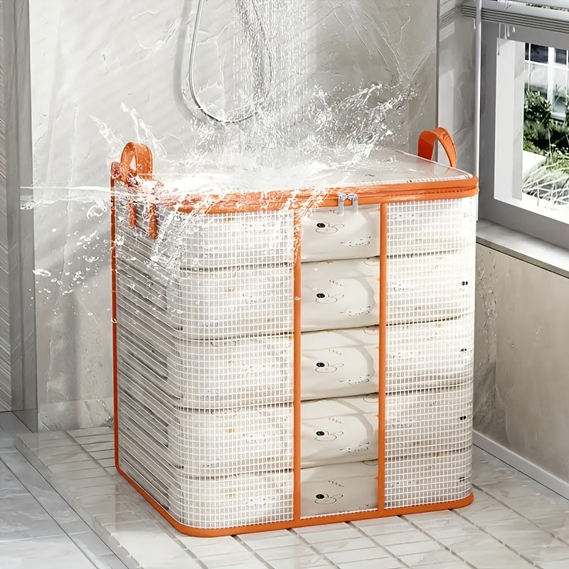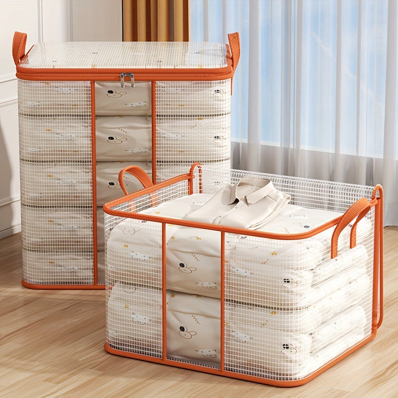 Большая прозрачная ПВХ сумка для хранения с фиксированными ручками, водонепроницаемая и пылезащитная, идеально подходит для организации одежды и постельного белья в общежитии, а также для практичного хранения под кроватью в спальне.